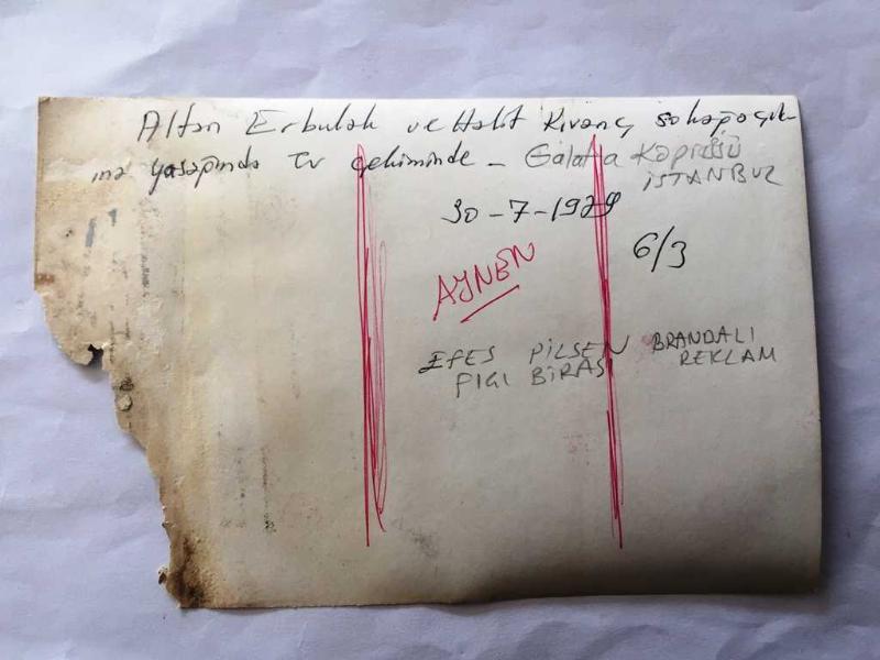 ALTAN ERBULAK'IN ORİJİNAL FOTOĞRAFI - ALTAN ERBULAK ve HALİT KIVANÇ SOKAĞA ÇIKMA YASAĞINDA GALATA KÖPRÜSÜNDE TV ÇEKİMİ YAPARKEN, ARKADA BRANDADA EFES PİLSEN FIÇI BİRİ REKLAMI FOTOĞRAF - SİYAH & BEYAZ - 18 x 12 cm EBADINDA - 30 TEMMUZ 1979, 10 ay önce satışa sunulmuştur.