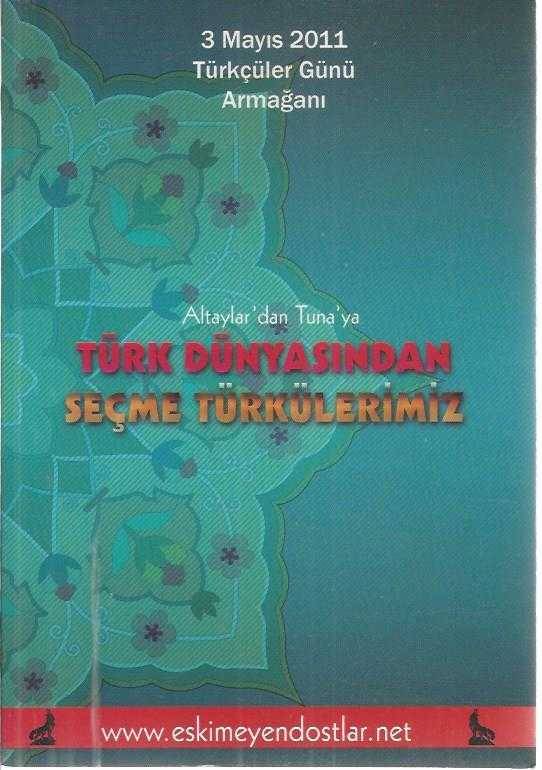 ALTAYLAR'DAN TUNA'YA TÜRK DÜNYASINDAN SEÇME TÜRKÜLERİMİZ, KOLEKTİF tarafından kaleme alınmıştır. Eser MERİÇ COŞKUN editörlüğünde hazırlanmıştır. Kitap 2011 yılında ESKİMEYEN DOSTLAR tarafından yayınlanmıştır. 200 sayfadır. ALTAYLAR'DAN TUNA'YA TÜRK DÜNYASINDAN SEÇME TÜRKÜLERİMİZ adlı eser Türkçe dilindedir.