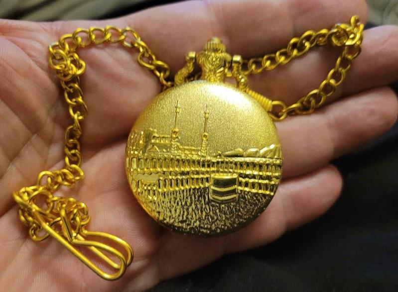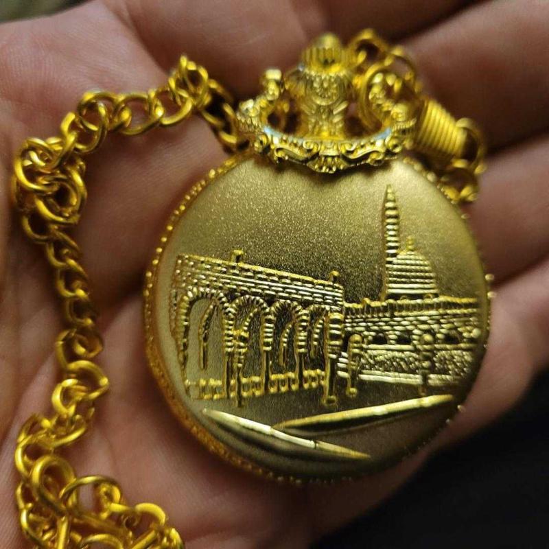 ALTIN RENGİ KABE VE MEDİNE GÖRSELLİ SAAT. HACDAN GELDİ. SIFIR. KULLANILMADI. başlıklı ürün, Antika-Koleksiyon, Hobi-Sanat > Antika > Antika Metal Objeler > Diğer Metal Obje kategorisinde İkinci El olarak satışa sunulmuştur.