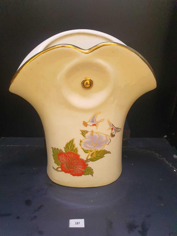 Porselen vazo altın yaldızlı doğa desenli 1980 ler Türk malı 1980 ler yükseklik 20 cm