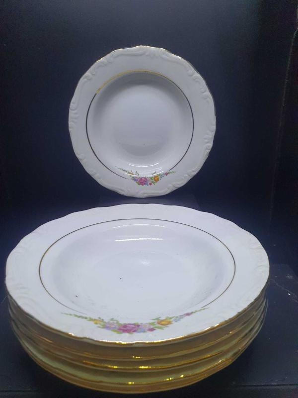 Altın yaldız çiçek işlemeli 6 lı yemek tabağı