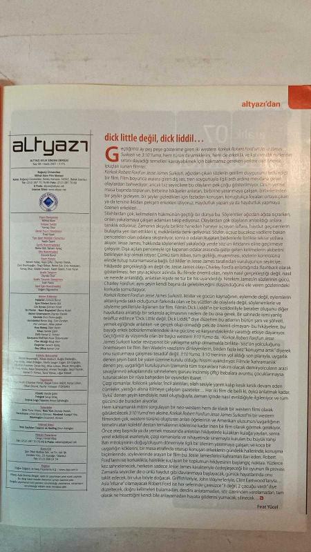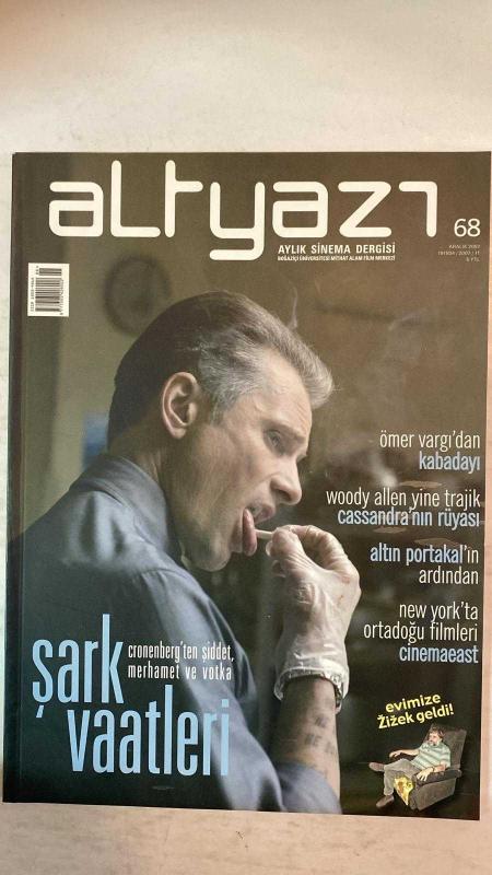 ALTYAZI AYLIK SİNEMA DERGİSİ - ARALIK 2007 SAYI: 68 DAVID CRONENBERG - ÖMER VARGI - WOODY ALLEN - SLAVOJ ŽIŽEK - ZEYNEP DADAK - ALISA LEBOW - ENİS KÖSTEPEN - KORHAN BOZKURT - CAFER PANAHİ - METİN DEMİRHAN - KAYA ÖZKARACALAR - ARTUN YERES - ÖVÜL DURMUŞOĞLU - YILMAZ GÜNEY - ŞERİF GÖREN - DİLEK AYDIN - TUNA YILMAZ - SENEM AYTAÇ - FIRAT YÜCEL - STEVEN KNIGHT - OĞUZHAN ERSÜMER - YAVUZ TURGUL - ŞENER ŞEN - KENAN İMİRZALIOĞLU - ÖVGÜ GÖKÇE - BERKE GÖL - AYÇA ÇİFTÇİ ŞARK VAATLERİ - KABADAYI - CASSANDRA'NIN RÜYASI - ALTIN PORTAKAL'IN ARDINDAN - NEW YORK'TA ORTADOĞU FİLMLERİ CINEMAEAST - EVİMİZE ŽIŽEK GELDİ - 2. ULUSLARARASI BURSA İPEK YOLU FİLM FESTİVALİ - 10. ULUSLARARASI SİNEMA-TARİH BULUŞMASI - ALTIN PUSULA - CENAZEDE ÖLÜM - HITMAN - HİCRAN SOKAĞI - ALVIN VE SİNCAPLAR - ARI FİLMİ - O KADIN - TUYA'NIN EVLİLİĞİ - DADIM AŞIK - KABİR HİKÂYELERİ - KUTSAL DAMACANA - MANHATTAN'DA SİHİR - MERHABA DÜNYALI - BEDEN ÖĞRETMENİ BAY WOODCOCK - İYİ SENELER LONDRA - ÖLÜM EMRİ - TAM TAKIM EKSİKSİZ 96 SAYFA, YAMAÇ OKUR tarafından kaleme alınmıştır. Eser FIRAT YÜCEL editörlüğünde hazırlanmıştır. Kitap [ŞAN OFSET MATBAA] yayınlanmıştır. 96 sayfadır. ALTYAZI AYLIK SİNEMA DERGİSİ - ARALIK 2007 SAYI: 68 DAVID CRONENBERG - ÖMER VARGI - WOODY ALLEN - SLAVOJ ŽIŽEK - ZEYNEP DADAK - ALISA LEBOW - ENİS KÖSTEPEN - KORHAN BOZKURT - CAFER PANAHİ - METİN DEMİRHAN - KAYA ÖZKARACALAR - ARTUN YERES - ÖVÜL DURMUŞOĞLU - YILMAZ GÜNEY - ŞERİF GÖREN - DİLEK AYDIN - TUNA YILMAZ - SENEM AYTAÇ - FIRAT YÜCEL - STEVEN KNIGHT - OĞUZHAN ERSÜMER - YAVUZ TURGUL - ŞENER ŞEN - KENAN İMİRZALIOĞLU - ÖVGÜ GÖKÇE - BERKE GÖL - AYÇA ÇİFTÇİ ŞARK VAATLERİ - KABADAYI - CASSANDRA'NIN RÜYASI - ALTIN PORTAKAL'IN ARDINDAN - NEW YORK'TA ORTADOĞU FİLMLERİ CINEMAEAST - EVİMİZE ŽIŽEK GELDİ - 2. ULUSLARARASI BURSA İPEK YOLU FİLM FESTİVALİ - 10. ULUSLARARASI SİNEMA-TARİH BULUŞMASI - ALTIN PUSULA - CENAZEDE ÖLÜM - HITMAN - HİCRAN SOKAĞI - ALVIN VE SİNCAPLAR - ARI FİLMİ - O KADIN - TUYA'NIN EVLİLİĞİ - DADIM AŞIK - KABİR HİKÂYELERİ - KUTSAL DAMACANA - MANHATTAN'DA SİHİR - MERHABA DÜNYALI - BEDEN ÖĞRETMENİ BAY WOODCOCK - İYİ SENELER LONDRA - ÖLÜM EMRİ - TAM TAKIM EKSİKSİZ 96 SAYFA adlı eser Türkçe dilindedir.