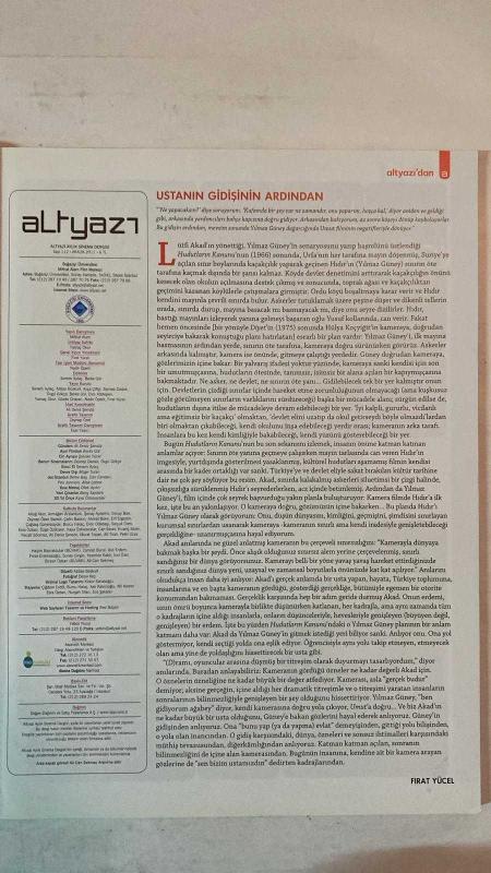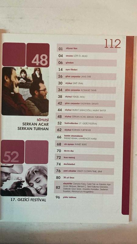 ALTYAZI AYLIK SİNEMA DERGİSİ - ARALIK 2011 SAYI: 112 LÜTFİ Ö. AKAD - ÜMİT ÜNAL - YÜKSEL AKSU - MURAT SARAÇOĞLU - MURAT BATGI - SERKAN ACAR - SERKAN TURHAN - KORHAN YURTSEVER - AHMET BÜKE - SENEM AYTAÇ - ABBAS BOZKURT - GÖZDE ONARAN - ALİ DENİZ ŞENSÖZ - BERKE GÖL - PELİN UZAY JANE EYRE - ACIMASIZ TANRI - KAZANMA SANATI - BEHZAT Ç. SENİ KALBİME GÖMDÜM - NAR - ENTELKÖY EFEKÖY’E KARŞI - AŞK VE DEVRİM - YANGIN VAR - ZAMANA KARŞI - CELAL TAN VE AİLESİNİN AŞIRI ACIKLI HİKAYESİ - GELECEK UZUN SÜRER - ANADOLU KARTALLARI - DEDEMİN İNSANLARI - ALMANYA’YA HOŞGELDİNİZ - 17. GEZİCİ FESTİVAL - İNGİLİZ KEMAL LAWRENCE’E KARŞI - CRAZY CLOWN TIME - SINIF - İNGİLİZ KEMAL LAWRENCE’E KARŞI - 30 YIL ÖNCE DOSYASI - TAM TAKIM EKSİKSİZ 96 SAYFA, YAMAÇ OKUR tarafından kaleme alınmıştır. Eser FIRAT YÜCEL editörlüğünde hazırlanmıştır. Kitap [ŞAN OFSET MATBAA] yayınlanmıştır. 96 sayfadır. ALTYAZI AYLIK SİNEMA DERGİSİ - ARALIK 2011 SAYI: 112 LÜTFİ Ö. AKAD - ÜMİT ÜNAL - YÜKSEL AKSU - MURAT SARAÇOĞLU - MURAT BATGI - SERKAN ACAR - SERKAN TURHAN - KORHAN YURTSEVER - AHMET BÜKE - SENEM AYTAÇ - ABBAS BOZKURT - GÖZDE ONARAN - ALİ DENİZ ŞENSÖZ - BERKE GÖL - PELİN UZAY JANE EYRE - ACIMASIZ TANRI - KAZANMA SANATI - BEHZAT Ç. SENİ KALBİME GÖMDÜM - NAR - ENTELKÖY EFEKÖY’E KARŞI - AŞK VE DEVRİM - YANGIN VAR - ZAMANA KARŞI - CELAL TAN VE AİLESİNİN AŞIRI ACIKLI HİKAYESİ - GELECEK UZUN SÜRER - ANADOLU KARTALLARI - DEDEMİN İNSANLARI - ALMANYA’YA HOŞGELDİNİZ - 17. GEZİCİ FESTİVAL - İNGİLİZ KEMAL LAWRENCE’E KARŞI - CRAZY CLOWN TIME - SINIF - İNGİLİZ KEMAL LAWRENCE’E KARŞI - 30 YIL ÖNCE DOSYASI - TAM TAKIM EKSİKSİZ 96 SAYFA adlı eser Türkçe dilindedir.