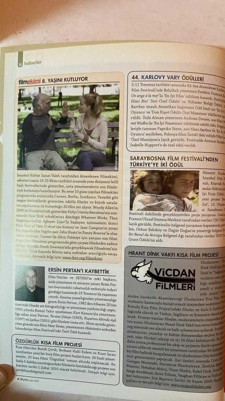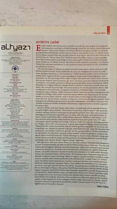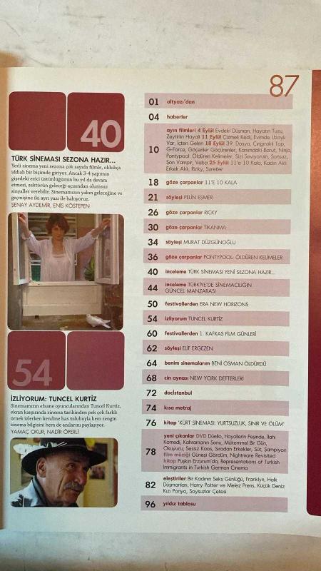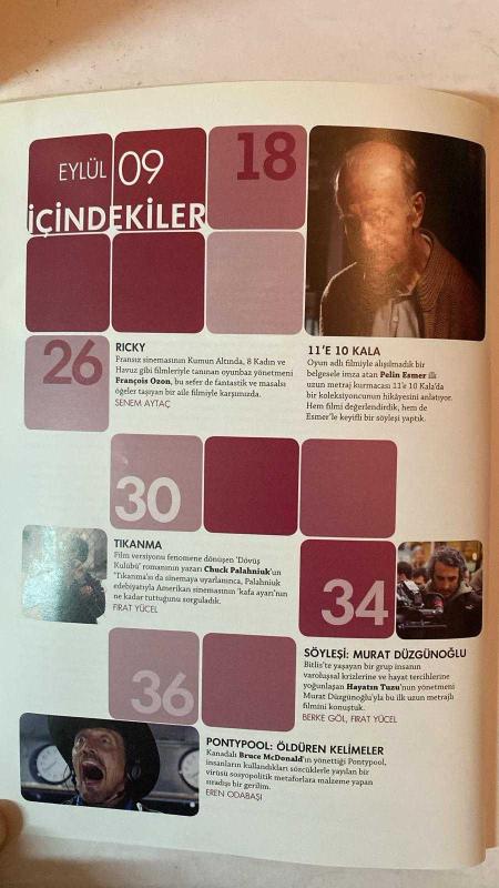 ALTYAZI AYLIK SİNEMA DERGİSİ - EYLÜL 2009 SAYI: 87 CHUCK PALAHNIUK - TUNCEL KURTİZ - SENAY AYDEMİR - ENİS KÖSTEPEN - PELİN ESMER - MURAT DÜZGÜNOĞLU - BERKE GÖL - FIRAT YÜCEL - SENEM AYTAÇ - EREN ODABAŞI - ELİF ERGEZEN - YAMAÇ OKUR - NADİR ÖPERLİ - F. H. DAĞLARCA 11’E 10 KALA - HAYATIN TUZU - YENİ SEZONDA YERLİ SİNEMA - TÜRK SİNEMASI SEZONA HAZIR - TÜRKİYE’DE SİNEMACILIĞIN GÜNCEL MANZARASI - RICKY - TIKANMA - PONTYPOOL: ÖLDÜREN KELİMELER - İZLİYORUM: TUNCEL KURTİZ - 1. KAFKAS FİLM GÜNLERİ - BENİ OSMAN ÖLDÜRDÜ - NEW YORK DEFTERLERİ - DOCİSTANBUL - KÜRT SİNEMASI: YURTSUZLUK, SINIR VE ÖLÜM - GÜNEŞİ GÖRDÜM - NIGHTMARE REVISITED - PUŞKİN ERZURUM’DA - REPRESENTATIONS OF TURKISH IMMIGRANTS IN TURKISH GERMAN CINEMA - BİR KADININ SEKS GÜNLÜĞÜ - FRANKLYN - HALK DÜŞMANLARI - HARRY POTTER VE MELEZ PRENS - KÜÇÜK DENİZ KIZI PONYO - SOYSUZLAR ÇETESİ - TAM TAKIM EKSİKSİZ 96 SAYFA, YAMAÇ OKUR tarafından kaleme alınmıştır. Eser FIRAT YÜCEL editörlüğünde hazırlanmıştır. Kitap [ŞAN OFSET MATBAA] yayınlanmıştır. 96 sayfadır. ALTYAZI AYLIK SİNEMA DERGİSİ - EYLÜL 2009 SAYI: 87 CHUCK PALAHNIUK - TUNCEL KURTİZ - SENAY AYDEMİR - ENİS KÖSTEPEN - PELİN ESMER - MURAT DÜZGÜNOĞLU - BERKE GÖL - FIRAT YÜCEL - SENEM AYTAÇ - EREN ODABAŞI - ELİF ERGEZEN - YAMAÇ OKUR - NADİR ÖPERLİ - F. H. DAĞLARCA 11’E 10 KALA - HAYATIN TUZU - YENİ SEZONDA YERLİ SİNEMA - TÜRK SİNEMASI SEZONA HAZIR - TÜRKİYE’DE SİNEMACILIĞIN GÜNCEL MANZARASI - RICKY - TIKANMA - PONTYPOOL: ÖLDÜREN KELİMELER - İZLİYORUM: TUNCEL KURTİZ - 1. KAFKAS FİLM GÜNLERİ - BENİ OSMAN ÖLDÜRDÜ - NEW YORK DEFTERLERİ - DOCİSTANBUL - KÜRT SİNEMASI: YURTSUZLUK, SINIR VE ÖLÜM - GÜNEŞİ GÖRDÜM - NIGHTMARE REVISITED - PUŞKİN ERZURUM’DA - REPRESENTATIONS OF TURKISH IMMIGRANTS IN TURKISH GERMAN CINEMA - BİR KADININ SEKS GÜNLÜĞÜ - FRANKLYN - HALK DÜŞMANLARI - HARRY POTTER VE MELEZ PRENS - KÜÇÜK DENİZ KIZI PONYO - SOYSUZLAR ÇETESİ - TAM TAKIM EKSİKSİZ 96 SAYFA adlı eser Türkçe dilindedir.