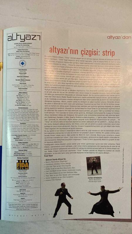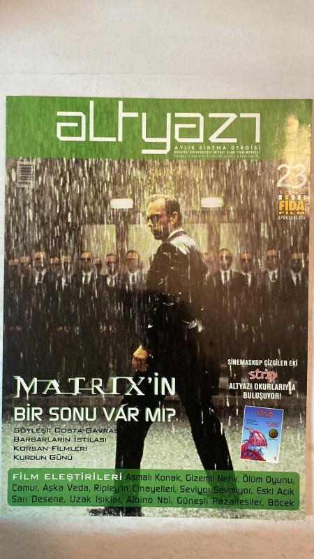 ALTYAZI AYLIK SİNEMA DERGİSİ - KASIM 2003 SAYI: 23 - ÖZLEM ÖZLER - GÜÇSAL PUSAR - SIBEL TINAR - PELIN UZAY - BÜKE YAĞL - ORKUN YEŞIM - TUNA YILMAZ - MUAMMER YANMAZ - BANG SARHAN - BAŞAK ÇALLIOĞLU - EMINE UÇAR - EMS ISLEK - PELIN BEL TINAR - DEVRIM ALPDGE - AYŞEGÜL KOÇ - ERCIMENT ALMAN - GÜLEREN EREN - AKIN KANUK - ONUR AKDOĞAN - SINAN ÖDEKAN - SELMA YALAMAN - NIHAN GÜNEY - EBRU SÜRÜN ERMAN - ELIF KARATUNA - ARAU MIRKELAM - MURAT MIHÇIOĞLU - GIOVANNI SCOGNAMILLO - RIDLEY SCOTT - COEN KARDEŞLER - ZEKI DEMIRKUBUZ - PETER WEIR - HECTOR BABENCO - ORLANDO BLOOM - ANTOINE FUQUA - MARIE-JOSE CIROZE - FRANÇOIS DUPEYRON - MEHMET CORAL - GÜNDÜZ VASSAF MATRIX'IN BİR SONU VAR MI? - SÖYLEŞİ: COSTA GAVRAS - BARBARLARIN İSTİLASI - KURDUN GÜNÜ - SİNEMASKOP ÇİZGİLER EKİ - STRIP - ALTYAZI OKURLARIYLA BULUŞUYOR - ASMALI KONAK - GİZEMLİ NEHİR - ÖLÜM OYUNU - ÇAMUR - AŞKA VEDA - RIPLEY'İN CİNAYETLERİ - SEVİYOR SEVMİYOR - ESKİ AÇIK SARI DESENE - UZAK IŞIKLAR - ALBINO NOI - GÜNE - TAM TAKIM EKSİKSİZ 96 SAYFA, YAMAÇ OKUR tarafından kaleme alınmıştır. Eser FIRAT YÜCEL editörlüğünde hazırlanmıştır. Kitap [ŞAN OFSET MATBAA] yayınlanmıştır. 96 sayfadır. ALTYAZI AYLIK SİNEMA DERGİSİ - KASIM 2003 SAYI: 23 - ÖZLEM ÖZLER - GÜÇSAL PUSAR - SIBEL TINAR - PELIN UZAY - BÜKE YAĞL - ORKUN YEŞIM - TUNA YILMAZ - MUAMMER YANMAZ - BANG SARHAN - BAŞAK ÇALLIOĞLU - EMINE UÇAR - EMS ISLEK - PELIN BEL TINAR - DEVRIM ALPDGE - AYŞEGÜL KOÇ - ERCIMENT ALMAN - GÜLEREN EREN - AKIN KANUK - ONUR AKDOĞAN - SINAN ÖDEKAN - SELMA YALAMAN - NIHAN GÜNEY - EBRU SÜRÜN ERMAN - ELIF KARATUNA - ARAU MIRKELAM - MURAT MIHÇIOĞLU - GIOVANNI SCOGNAMILLO - RIDLEY SCOTT - COEN KARDEŞLER - ZEKI DEMIRKUBUZ - PETER WEIR - HECTOR BABENCO - ORLANDO BLOOM - ANTOINE FUQUA - MARIE-JOSE CIROZE - FRANÇOIS DUPEYRON - MEHMET CORAL - GÜNDÜZ VASSAF MATRIX'IN BİR SONU VAR MI? - SÖYLEŞİ: COSTA GAVRAS - BARBARLARIN İSTİLASI - KURDUN GÜNÜ - SİNEMASKOP ÇİZGİLER EKİ - STRIP - ALTYAZI OKURLARIYLA BULUŞUYOR - ASMALI KONAK - GİZEMLİ NEHİR - ÖLÜM OYUNU - ÇAMUR - AŞKA VEDA - RIPLEY'İN CİNAYETLERİ - SEVİYOR SEVMİYOR - ESKİ AÇIK SARI DESENE - UZAK IŞIKLAR - ALBINO NOI - GÜNE - TAM TAKIM EKSİKSİZ 96 SAYFA adlı eser Türkçe dilindedir.