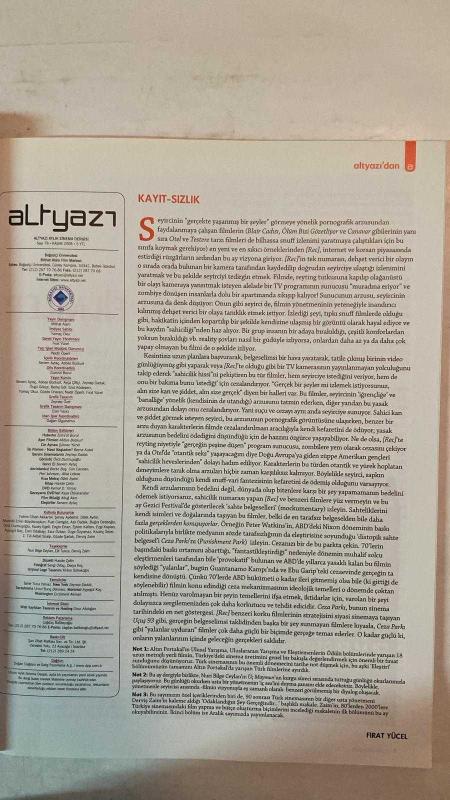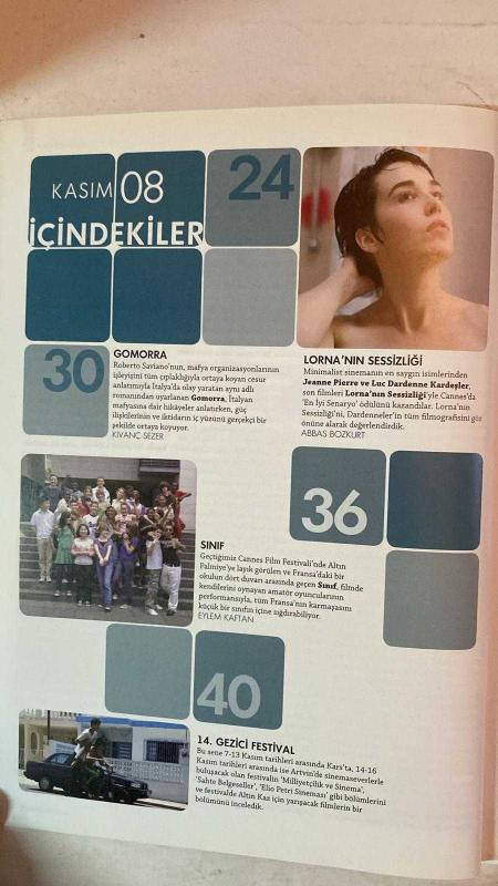 ALTYAZI AYLIK SİNEMA DERGİSİ - KASIM 2008 SAYI: 78 DERVİŞ ZAİM - NURİ BİLGE CEYLAN - ERDEN KIRAL - ONUR ÜNLÜ - KAZIM ÖZ - KIVANÇ SEZER - JEANNE PIERRE DARDENNE - LUC DARDENNE - ABBAS BOZKURT - EYLEM KAFTAN - KAZIM ÖZ - KIVANÇ SEZER - FIRAT YÜCEL - ZEYNEP DADAK ALTIN PORTAKAL 2008 - 14. GEZİCİ FESTİVAL - ÜÇ MAYMUN KURGU GÜNLÜĞÜ - ALÜVYONİK TÜRK SİNEMASI - JAMES BOND’UN SERÜVENİ - LORNA’NIN SESSİZLİĞİ - GOMORRA - SINIF - 3. İPEK YOLU FİLM FESTİVALİ - JEANNE DIELMAN - DALİ’NİN RÜYALARI - PERA MÜZESİ’NDE ALMAN FİLMLERİ - KISA FİLM SENARYOSU - FİLM İCABİ - KADINA MELODRAM YAKIŞIR - ARKADAŞIMIN AŞKI - GÜNEŞİN OĞLU - ISSIZ ADAM - QUANTUM OF SOLACE - RÜYA - SON CELLAT - [REC] - FIRELIES IN THE GARDEN - FIRTINA - GİTMEK - GOMORRA - LİMON AĞACI - SON BULUŞMA - YILDIZLAR TAKIMI 3 MEZUNİYET YILI - CONNECTED - DESTERE - INJU - OSMANLI CUMHURİYETİ - ARAMIZDA CASUS VAR - MADAGASKAR 2 - JEANNE DIELMAN - DALİ’NİN RÜYALARI - DRACULA - AŞKZEDE - HELLBOY II ALTIN ORDU - Sİ - TAM TAKIM EKSİKSİZ 96 SAYFA, YAMAÇ OKUR tarafından kaleme alınmıştır. Eser FIRAT YÜCEL editörlüğünde hazırlanmıştır. Kitap [ŞAN OFSET MATBAA] yayınlanmıştır. 96 sayfadır. ALTYAZI AYLIK SİNEMA DERGİSİ - KASIM 2008 SAYI: 78 DERVİŞ ZAİM - NURİ BİLGE CEYLAN - ERDEN KIRAL - ONUR ÜNLÜ - KAZIM ÖZ - KIVANÇ SEZER - JEANNE PIERRE DARDENNE - LUC DARDENNE - ABBAS BOZKURT - EYLEM KAFTAN - KAZIM ÖZ - KIVANÇ SEZER - FIRAT YÜCEL - ZEYNEP DADAK ALTIN PORTAKAL 2008 - 14. GEZİCİ FESTİVAL - ÜÇ MAYMUN KURGU GÜNLÜĞÜ - ALÜVYONİK TÜRK SİNEMASI - JAMES BOND’UN SERÜVENİ - LORNA’NIN SESSİZLİĞİ - GOMORRA - SINIF - 3. İPEK YOLU FİLM FESTİVALİ - JEANNE DIELMAN - DALİ’NİN RÜYALARI - PERA MÜZESİ’NDE ALMAN FİLMLERİ - KISA FİLM SENARYOSU - FİLM İCABİ - KADINA MELODRAM YAKIŞIR - ARKADAŞIMIN AŞKI - GÜNEŞİN OĞLU - ISSIZ ADAM - QUANTUM OF SOLACE - RÜYA - SON CELLAT - [REC] - FIRELIES IN THE GARDEN - FIRTINA - GİTMEK - GOMORRA - LİMON AĞACI - SON BULUŞMA - YILDIZLAR TAKIMI 3 MEZUNİYET YILI - CONNECTED - DESTERE - INJU - OSMANLI CUMHURİYETİ - ARAMIZDA CASUS VAR - MADAGASKAR 2 - JEANNE DIELMAN - DALİ’NİN RÜYALARI - DRACULA - AŞKZEDE - HELLBOY II ALTIN ORDU - Sİ - TAM TAKIM EKSİKSİZ 96 SAYFA adlı eser Türkçe dilindedir.