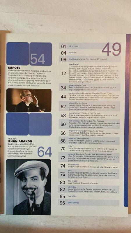 ALTYAZI AYLIK SİNEMA DERGİSİ - MART 2006 SAYI: 49 MICHAEL HANEKE - NOAH BAUMBACH - MIRANDA JULY - REHA ERDEM - ANG LEE - HEATH LEDGER - JAKE GYLLENHAAL - BENNETT MILLER - TRUMAN CAPOTE - İLHAN ARAKON - CHARLES DANCE - PELİN ESMER - OĞUZHAN ERSÜMER - ŞÜKRAN YÜCEL - ÖVÜL DURMUŞOĞLU - GÖZDE ONARAN - MURATHAN MUNGAN - YEKTA KOPAN - BURÇAK EVREN - ZEYNEP DADAK - ÖZLEM OĞUZHAN - ÖVGÜ GÖKÇE - SENEM AYTAÇ - FIRAT YÜCEL SAKLI - BROKEBACK DAĞI - CAPOTE - MÜREKKEP BALIĞI VE BALİNA - BEN VE SEN VE DİĞERLERİ - KORKUYORUM ANNE - OYUN - LAVANTA KOKULU KADINLAR - DICK VE JANE İŞ BAŞINDA - BAMBI 2 - BÜYÜK YOLCULUK - KADERSİZLİK - KUTSAL BAKİRE - FIRTINALI HAYATLAR - OTEL - BEYZA’NIN KADINLARI - NE BİLİYORUZ Kİ - E-KATİL - 16. BLOK - SYRIANA - KIRMIZI BAŞLIKLI KIZ - PEMBE PANTER - TEMEL İÇGÜDÜ 2 - UMUT MEVSİMİ - CASANOVA - BAZI ÇOCUKLAR - V - KORKU FİLMLERİNDE GERÇEKTE OLMAK EĞİLİMİ - İTİRAFIN NESNESİ - GÖZETLEYİCİ ESTETİK - NEDEN VİDEO İLLE DE VİDEO - 17. ANKARA FİLM F - TAM TAKIM EKSİKSİZ 96 SAYFA, YAMAÇ OKUR tarafından kaleme alınmıştır. Eser FIRAT YÜCEL editörlüğünde hazırlanmıştır. Kitap [ŞAN OFSET MATBAA] yayınlanmıştır. 96 sayfadır. ALTYAZI AYLIK SİNEMA DERGİSİ - MART 2006 SAYI: 49 MICHAEL HANEKE - NOAH BAUMBACH - MIRANDA JULY - REHA ERDEM - ANG LEE - HEATH LEDGER - JAKE GYLLENHAAL - BENNETT MILLER - TRUMAN CAPOTE - İLHAN ARAKON - CHARLES DANCE - PELİN ESMER - OĞUZHAN ERSÜMER - ŞÜKRAN YÜCEL - ÖVÜL DURMUŞOĞLU - GÖZDE ONARAN - MURATHAN MUNGAN - YEKTA KOPAN - BURÇAK EVREN - ZEYNEP DADAK - ÖZLEM OĞUZHAN - ÖVGÜ GÖKÇE - SENEM AYTAÇ - FIRAT YÜCEL SAKLI - BROKEBACK DAĞI - CAPOTE - MÜREKKEP BALIĞI VE BALİNA - BEN VE SEN VE DİĞERLERİ - KORKUYORUM ANNE - OYUN - LAVANTA KOKULU KADINLAR - DICK VE JANE İŞ BAŞINDA - BAMBI 2 - BÜYÜK YOLCULUK - KADERSİZLİK - KUTSAL BAKİRE - FIRTINALI HAYATLAR - OTEL - BEYZA’NIN KADINLARI - NE BİLİYORUZ Kİ - E-KATİL - 16. BLOK - SYRIANA - KIRMIZI BAŞLIKLI KIZ - PEMBE PANTER - TEMEL İÇGÜDÜ 2 - UMUT MEVSİMİ - CASANOVA - BAZI ÇOCUKLAR - V - KORKU FİLMLERİNDE GERÇEKTE OLMAK EĞİLİMİ - İTİRAFIN NESNESİ - GÖZETLEYİCİ ESTETİK - NEDEN VİDEO İLLE DE VİDEO - 17. ANKARA FİLM F - TAM TAKIM EKSİKSİZ 96 SAYFA adlı eser Türkçe dilindedir.