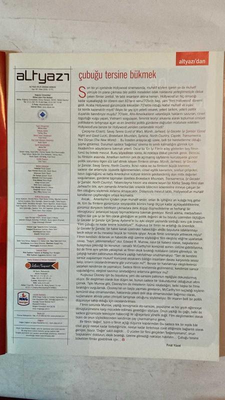 ALTYAZI AYLIK SİNEMA DERGİSİ - MART 2006 SAYI: 49 MICHAEL HANEKE - NOAH BAUMBACH - MIRANDA JULY - REHA ERDEM - ANG LEE - HEATH LEDGER - JAKE GYLLENHAAL - BENNETT MILLER - TRUMAN CAPOTE - İLHAN ARAKON - CHARLES DANCE - PELİN ESMER - OĞUZHAN ERSÜMER - ŞÜKRAN YÜCEL - ÖVÜL DURMUŞOĞLU - GÖZDE ONARAN - MURATHAN MUNGAN - YEKTA KOPAN - BURÇAK EVREN - ZEYNEP DADAK - ÖZLEM OĞUZHAN - ÖVGÜ GÖKÇE - SENEM AYTAÇ - FIRAT YÜCEL SAKLI - BROKEBACK DAĞI - CAPOTE - MÜREKKEP BALIĞI VE BALİNA - BEN VE SEN VE DİĞERLERİ - KORKUYORUM ANNE - OYUN - LAVANTA KOKULU KADINLAR - DICK VE JANE İŞ BAŞINDA - BAMBI 2 - BÜYÜK YOLCULUK - KADERSİZLİK - KUTSAL BAKİRE - FIRTINALI HAYATLAR - OTEL - BEYZA’NIN KADINLARI - NE BİLİYORUZ Kİ - E-KATİL - 16. BLOK - SYRIANA - KIRMIZI BAŞLIKLI KIZ - PEMBE PANTER - TEMEL İÇGÜDÜ 2 - UMUT MEVSİMİ - CASANOVA - BAZI ÇOCUKLAR - V - KORKU FİLMLERİNDE GERÇEKTE OLMAK EĞİLİMİ - İTİRAFIN NESNESİ - GÖZETLEYİCİ ESTETİK - NEDEN VİDEO İLLE DE VİDEO - 17. ANKARA FİLM F - TAM TAKIM EKSİKSİZ 96 SAYFA adlı eser, Kitap > Süreli Yayınlar > Dergiler > Siyaset kategorisinde İkinci El olarak satıştadır.