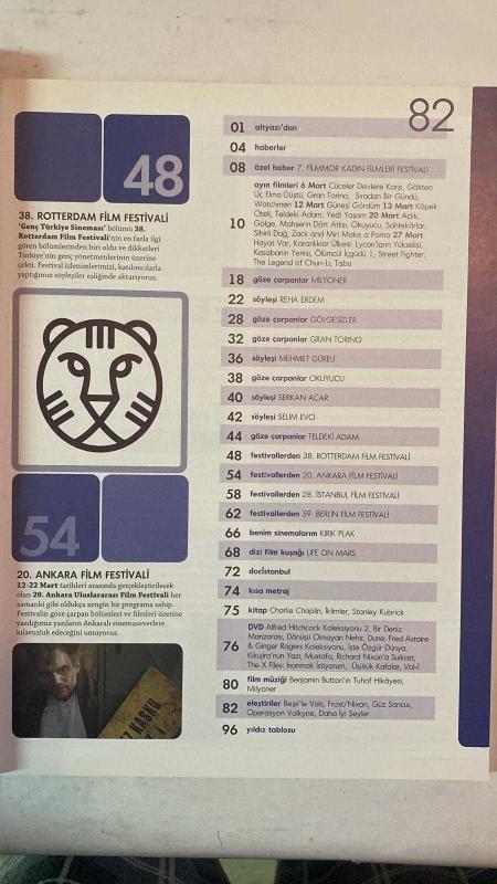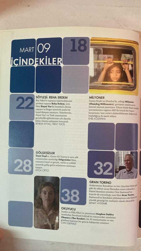 ALTYAZI AYLIK SİNEMA DERGİSİ - MART 2009 SAYI: 82 REHA ERDEM - MEHMET GÜRELİ - SERKAN ACAR - SELİM EVCİ - SENEM AYTAÇ - FIRAT YÜCEL - ENİS KÖSTEPEN - AYÇA ÇİFTÇİ - ŞENAY AYDEMİR - CAN ESKİNAZİ - ÖZCAN ALPER - HALE SOYGAZİ - NURİ BİLGE CEYLAN - HATİCE ASLAN - ONUR SAYLAK - KLAUS EDER - ŞENER ŞEN - NİJAT ÖZÖN - TÜLİN ÖZEN - AHMET RİFAT ŞUNGAR - FEZA ÇALDIRAN - DEMİR DEMİRKAN - AYHAN ERGÜRSEL - BORA GÖKŞİNGÖL - NATALİ YERES - BAHRİYE KABADAYI - SENEM TÜZEN - TAYLAN BİRADERLER - SERTAÇ YÜKSEL - KAAN DEMİRÇELİK - MURAT İNCEDİR - ERAY MERT - DENİZ BUGA - OZAN YILDIRIM - CAN AKDAĞ - HUGH JACKMAN - KATE WINSLET - SEAN PENN - HEATH LEDGER - PENELOPE CRUZ - DUSTIN LANCE BLACK - SIMON BEAUFOY - STEPHEN DALDRY - BERNHARD SCHLINK - DANNY BOYLE - RUBIANA ALI - SEYFİ HAVAERİ - GAZANFER ÖZCAN - YEŞİM USTAOĞLU - DERYA ALABORA - ÖVÜL AVKIRAN - TSILLA CHELTON REHA ERDEM'LE ÖZEL SÖYLEŞİ - GRAN TORINO - GÖLGESİZLER - SLUMDOG MILLIONAIRE - THE READER - TELDEKİ ADAM - FESTİVA - TAM TAKIM EKSİKSİZ 96 SAYFA, YAMAÇ OKUR tarafından kaleme alınmıştır. Eser FIRAT YÜCEL editörlüğünde hazırlanmıştır. Kitap [ŞAN OFSET MATBAA] yayınlanmıştır. 96 sayfadır. ALTYAZI AYLIK SİNEMA DERGİSİ - MART 2009 SAYI: 82 REHA ERDEM - MEHMET GÜRELİ - SERKAN ACAR - SELİM EVCİ - SENEM AYTAÇ - FIRAT YÜCEL - ENİS KÖSTEPEN - AYÇA ÇİFTÇİ - ŞENAY AYDEMİR - CAN ESKİNAZİ - ÖZCAN ALPER - HALE SOYGAZİ - NURİ BİLGE CEYLAN - HATİCE ASLAN - ONUR SAYLAK - KLAUS EDER - ŞENER ŞEN - NİJAT ÖZÖN - TÜLİN ÖZEN - AHMET RİFAT ŞUNGAR - FEZA ÇALDIRAN - DEMİR DEMİRKAN - AYHAN ERGÜRSEL - BORA GÖKŞİNGÖL - NATALİ YERES - BAHRİYE KABADAYI - SENEM TÜZEN - TAYLAN BİRADERLER - SERTAÇ YÜKSEL - KAAN DEMİRÇELİK - MURAT İNCEDİR - ERAY MERT - DENİZ BUGA - OZAN YILDIRIM - CAN AKDAĞ - HUGH JACKMAN - KATE WINSLET - SEAN PENN - HEATH LEDGER - PENELOPE CRUZ - DUSTIN LANCE BLACK - SIMON BEAUFOY - STEPHEN DALDRY - BERNHARD SCHLINK - DANNY BOYLE - RUBIANA ALI - SEYFİ HAVAERİ - GAZANFER ÖZCAN - YEŞİM USTAOĞLU - DERYA ALABORA - ÖVÜL AVKIRAN - TSILLA CHELTON REHA ERDEM'LE ÖZEL SÖYLEŞİ - GRAN TORINO - GÖLGESİZLER - SLUMDOG MILLIONAIRE - THE READER - TELDEKİ ADAM - FESTİVA - TAM TAKIM EKSİKSİZ 96 SAYFA adlı eser Türkçe dilindedir.