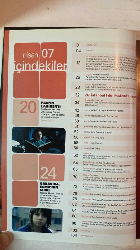 ALTYAZI AYLIK SİNEMA DERGİSİ - NİSAN 2007 SAYI: 61 PIER PAOLO PASOLINI - GUS VAN SANT - BOB FOSSE - HAYAO MIYAZAKI - ALAIN RESNAIS - JOHN CAMERON MITCHELL - HALİT REFİĞ - TSAI MING-LIANG - FRÉDÉRIC AUBURTIN - PAUL VERHOEVEN - MELİS BEHLİL - GUILLERMO DEL TORO - SENEM AYTAÇ - NADİR ÖPERLİ - JASMILA ZBANIC - ATIF YILMAZ - PONTECORVO - IMAMURA - ALI NYKVIST - EYTAN FOX - FERZAN ÖZPETEK - ADNAN YILDIZ - ZAFFER DORUK PAN’IN LABİRENTİ - LITTLE MISS SUNSHINE - AURA - AYRILIK GÜNLERİ - BİR BAŞKANIN ÖLÜM YETMEZ - ESMA’NIN SIRRI - KİMSEYE SÖYLEME - BEN SANA SÖYLEMİŞTİM - KAR KİTAP - MESSENGERS - SEVGİLİM İSTANBUL - ZİNCİRBOZAN - ASTERIX VİKİNGLERE KARŞI - PARS KİRAZ OPERASYONU - YAZ YAĞMURU - ÇILGIN MOTORCULAR - HASAT ZAMANI - KÜÇÜK GÜN IŞIĞIM - KARA KİTAP - GRBAVICA ESMA’NIN SIRRI - 26. İSTANBUL FİLM FESTİVALİ DOSYASI - 18. ANKARA FİLM FESTİVALİ - 25. FAJR FİLM FESTİVALİ - BALONCUK - 2007 HİSAR KISA FİLM SEÇKİSİ - JESPER JUST VİDEOLARI - YAZLIK SİNEMALARIN BÜYÜS - TAM TAKIM EKSİKSİZ 96 SAYFA, YAMAÇ OKUR tarafından kaleme alınmıştır. Eser FIRAT YÜCEL editörlüğünde hazırlanmıştır. Kitap [ŞAN OFSET MATBAA] yayınlanmıştır. 96 sayfadır. ALTYAZI AYLIK SİNEMA DERGİSİ - NİSAN 2007 SAYI: 61 PIER PAOLO PASOLINI - GUS VAN SANT - BOB FOSSE - HAYAO MIYAZAKI - ALAIN RESNAIS - JOHN CAMERON MITCHELL - HALİT REFİĞ - TSAI MING-LIANG - FRÉDÉRIC AUBURTIN - PAUL VERHOEVEN - MELİS BEHLİL - GUILLERMO DEL TORO - SENEM AYTAÇ - NADİR ÖPERLİ - JASMILA ZBANIC - ATIF YILMAZ - PONTECORVO - IMAMURA - ALI NYKVIST - EYTAN FOX - FERZAN ÖZPETEK - ADNAN YILDIZ - ZAFFER DORUK PAN’IN LABİRENTİ - LITTLE MISS SUNSHINE - AURA - AYRILIK GÜNLERİ - BİR BAŞKANIN ÖLÜM YETMEZ - ESMA’NIN SIRRI - KİMSEYE SÖYLEME - BEN SANA SÖYLEMİŞTİM - KAR KİTAP - MESSENGERS - SEVGİLİM İSTANBUL - ZİNCİRBOZAN - ASTERIX VİKİNGLERE KARŞI - PARS KİRAZ OPERASYONU - YAZ YAĞMURU - ÇILGIN MOTORCULAR - HASAT ZAMANI - KÜÇÜK GÜN IŞIĞIM - KARA KİTAP - GRBAVICA ESMA’NIN SIRRI - 26. İSTANBUL FİLM FESTİVALİ DOSYASI - 18. ANKARA FİLM FESTİVALİ - 25. FAJR FİLM FESTİVALİ - BALONCUK - 2007 HİSAR KISA FİLM SEÇKİSİ - JESPER JUST VİDEOLARI - YAZLIK SİNEMALARIN BÜYÜS - TAM TAKIM EKSİKSİZ 96 SAYFA adlı eser Türkçe dilindedir.