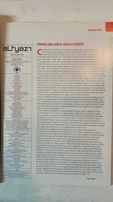ALTYAZI AYLIK SİNEMA DERGİSİ - NİSAN 2007 SAYI: 61 PIER PAOLO PASOLINI - GUS VAN SANT - BOB FOSSE - HAYAO MIYAZAKI - ALAIN RESNAIS - JOHN CAMERON MITCHELL - HALİT REFİĞ - TSAI MING-LIANG - FRÉDÉRIC AUBURTIN - PAUL VERHOEVEN - MELİS BEHLİL - GUILLERMO DEL TORO - SENEM AYTAÇ - NADİR ÖPERLİ - JASMILA ZBANIC - ATIF YILMAZ - PONTECORVO - IMAMURA - ALI NYKVIST - EYTAN FOX - FERZAN ÖZPETEK - ADNAN YILDIZ - ZAFFER DORUK PAN’IN LABİRENTİ - LITTLE MISS SUNSHINE - AURA - AYRILIK GÜNLERİ - BİR BAŞKANIN ÖLÜM YETMEZ - ESMA’NIN SIRRI - KİMSEYE SÖYLEME - BEN SANA SÖYLEMİŞTİM - KAR KİTAP - MESSENGERS - SEVGİLİM İSTANBUL - ZİNCİRBOZAN - ASTERIX VİKİNGLERE KARŞI - PARS KİRAZ OPERASYONU - YAZ YAĞMURU - ÇILGIN MOTORCULAR - HASAT ZAMANI - KÜÇÜK GÜN IŞIĞIM - KARA KİTAP - GRBAVICA ESMA’NIN SIRRI - 26. İSTANBUL FİLM FESTİVALİ DOSYASI - 18. ANKARA FİLM FESTİVALİ - 25. FAJR FİLM FESTİVALİ - BALONCUK - 2007 HİSAR KISA FİLM SEÇKİSİ - JESPER JUST VİDEOLARI - YAZLIK SİNEMALARIN BÜYÜS - TAM TAKIM EKSİKSİZ 96 SAYFA adlı eser, Kitap > Süreli Yayınlar > Dergiler > Siyaset kategorisinde İkinci El olarak satıştadır.