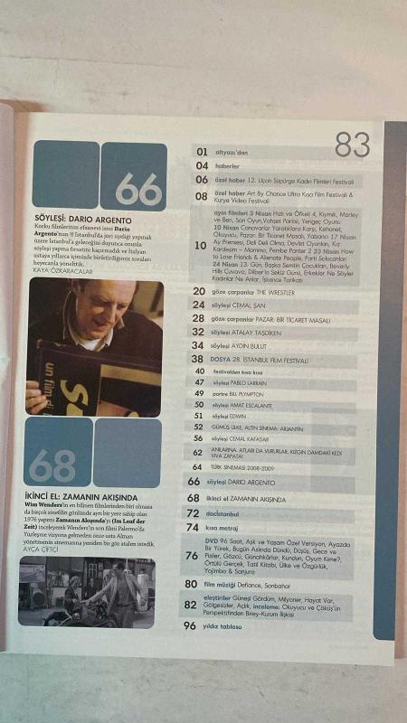 ALTYAZI AYLIK SİNEMA DERGİSİ - NISAN 2009 SAYI: 83 DARIO ARGENTO - KAYA ÖZKARACALAR - CEMAL ŞAN - ÖVGÜ GÖKÇE - MICKEY ROURKE - DARREN ARONOFSKY - ZEYNEP DADAK - ATALAY TAŞDİKEN - AYDIN BULUT - AYÇA ÇİFTÇİ - FIRAT YÜCEL - PABLO LARRAIN - BILL PLYMPTON - AMAT ESCALANTE - EDWIN - WIM WENDERS - CEMAL KAFADAR - ABBAS BOZKURT İSTANBUL FİLM FESTİVALİ - ASİLER AZİZLER AŞIKLAR - SÖYLEŞİ DARIO ARGENTO - 12. UÇAN SÜPÜRGE KADIN FİLMLERİ FESTİVALİ - ART BY CHANCE ULTRA KISA FİLM FESTİVALİ - KURYE VİDEO FESTİVALİ - HIZLI VE ÖFKELİ 4 - KIVMIK - MARLEY VE BEN - SON OYUN - VAHŞET PARTİSİ - YENGEÇ OYUNU - CANAVARLAR YARATIKLARA KARŞI - KEHANET - OKUYUCU - PAZAR BİR TİCARET MASALI - YABANCI - 10 AY PRENSESİ - DELİ DELİ OLMA - DEVLET OYUNLARI - KIZ KARDEŞİM MOMMO - PEMBE PANTER 2 - HOW TO LOSE FRIENDS & ALIENATE PEOPLE - PARTİ SOLUCANLARI - 13. GÜN - BAŞKA SEMTİN ÇOCUKLARI - BEVERLY HILLS CUVAVA - DİLBER’İN SEKİZ GÜNÜ - ERKEKLER NE SÖYLER KADINLAR NE ANLAR - İŞKENCE TARİKA - TAM TAKIM EKSİKSİZ 96 SAYFA, YAMAÇ OKUR tarafından kaleme alınmıştır. Eser FIRAT YÜCEL editörlüğünde hazırlanmıştır. Kitap [ŞAN OFSET MATBAA] yayınlanmıştır. 96 sayfadır. ALTYAZI AYLIK SİNEMA DERGİSİ - NISAN 2009 SAYI: 83 DARIO ARGENTO - KAYA ÖZKARACALAR - CEMAL ŞAN - ÖVGÜ GÖKÇE - MICKEY ROURKE - DARREN ARONOFSKY - ZEYNEP DADAK - ATALAY TAŞDİKEN - AYDIN BULUT - AYÇA ÇİFTÇİ - FIRAT YÜCEL - PABLO LARRAIN - BILL PLYMPTON - AMAT ESCALANTE - EDWIN - WIM WENDERS - CEMAL KAFADAR - ABBAS BOZKURT İSTANBUL FİLM FESTİVALİ - ASİLER AZİZLER AŞIKLAR - SÖYLEŞİ DARIO ARGENTO - 12. UÇAN SÜPÜRGE KADIN FİLMLERİ FESTİVALİ - ART BY CHANCE ULTRA KISA FİLM FESTİVALİ - KURYE VİDEO FESTİVALİ - HIZLI VE ÖFKELİ 4 - KIVMIK - MARLEY VE BEN - SON OYUN - VAHŞET PARTİSİ - YENGEÇ OYUNU - CANAVARLAR YARATIKLARA KARŞI - KEHANET - OKUYUCU - PAZAR BİR TİCARET MASALI - YABANCI - 10 AY PRENSESİ - DELİ DELİ OLMA - DEVLET OYUNLARI - KIZ KARDEŞİM MOMMO - PEMBE PANTER 2 - HOW TO LOSE FRIENDS & ALIENATE PEOPLE - PARTİ SOLUCANLARI - 13. GÜN - BAŞKA SEMTİN ÇOCUKLARI - BEVERLY HILLS CUVAVA - DİLBER’İN SEKİZ GÜNÜ - ERKEKLER NE SÖYLER KADINLAR NE ANLAR - İŞKENCE TARİKA - TAM TAKIM EKSİKSİZ 96 SAYFA adlı eser Türkçe dilindedir.