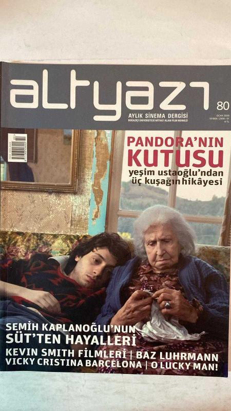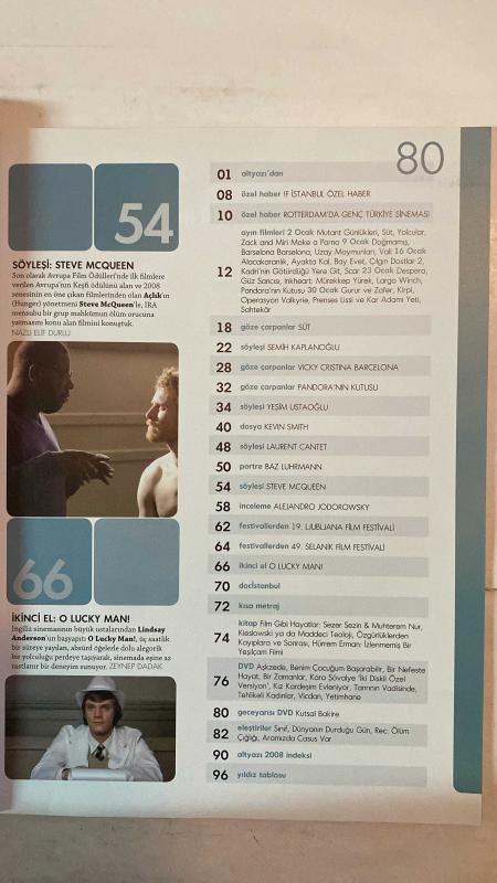 ALTYAZI AYLIK SİNEMA DERGİSİ - OCAK 2009 SAYI: 80 YEŞİM USTAOĞLU - SEMİH KAPLANOĞLU - STEVE MCQUEEN - NAZLI ELİF DURLU - ZEYNEP DADAK - EREN ODABAŞI - AYÇA ÇİFTÇİ - SENEM AYTAÇ - FIRAT YÜCEL - BAZ LUHRMANN - LAURENT CANTET - SEVİNÇ ÇALHANOĞLU - REHA ERDEM - DİNÇER ASLAN - AHMET TERZİOĞLU PANDORA’NIN KUTUSU - SÜT - VICKY CRISTINA BARCELONA - KEVIN SMITH DOSYASI - BAZ LUHRMANN PORTRESİ - STEVE MCQUEEN SÖYLEŞİSİ - ALEJANDRO JODOROWSKY İNCELEMESİ - O LUCKY MAN! - IF İSTANBUL ÖZEL HABER - ROTTERDAM’DA GENÇ TÜRKİYE SİNEMASI - MUTANT GÜNLÜKLERİ - YOLCULAR - ZACK AND MIRI MAKE A PORNO - DOĞMAMIŞ - BARSELONA BARSELONA - UZAY MAYMUNLARI - VALİ - ALACAKARANLIK - AYAKTA KAL - BAY EVET - ÇILGIN DOSTLAR 2 - 12 KADRİ’NİN GÖTÜRDÜĞÜ YERE GİT - SCAR - DESPERO - GÜZ SANCISI - INKHEART MÜREKKEP YÜREK - LARGO WINCH - GURUR VE ZAFER - KİRPİ - OPERASYON VALKYRIE - PRENSES LISSI VE KAR ADAMI YETİ - SAHTEKÂR - LJUBLJANA FİLM FESTİVALİ - SELANİK FİLM FESTİVALİ - FİLM GİBİ HAYATL - TAM TAKIM EKSİKSİZ 96 SAYFA, YAMAÇ OKUR tarafından kaleme alınmıştır. Eser FIRAT YÜCEL editörlüğünde hazırlanmıştır. Kitap [ŞAN OFSET MATBAA] yayınlanmıştır. 96 sayfadır. ALTYAZI AYLIK SİNEMA DERGİSİ - OCAK 2009 SAYI: 80 YEŞİM USTAOĞLU - SEMİH KAPLANOĞLU - STEVE MCQUEEN - NAZLI ELİF DURLU - ZEYNEP DADAK - EREN ODABAŞI - AYÇA ÇİFTÇİ - SENEM AYTAÇ - FIRAT YÜCEL - BAZ LUHRMANN - LAURENT CANTET - SEVİNÇ ÇALHANOĞLU - REHA ERDEM - DİNÇER ASLAN - AHMET TERZİOĞLU PANDORA’NIN KUTUSU - SÜT - VICKY CRISTINA BARCELONA - KEVIN SMITH DOSYASI - BAZ LUHRMANN PORTRESİ - STEVE MCQUEEN SÖYLEŞİSİ - ALEJANDRO JODOROWSKY İNCELEMESİ - O LUCKY MAN! - IF İSTANBUL ÖZEL HABER - ROTTERDAM’DA GENÇ TÜRKİYE SİNEMASI - MUTANT GÜNLÜKLERİ - YOLCULAR - ZACK AND MIRI MAKE A PORNO - DOĞMAMIŞ - BARSELONA BARSELONA - UZAY MAYMUNLARI - VALİ - ALACAKARANLIK - AYAKTA KAL - BAY EVET - ÇILGIN DOSTLAR 2 - 12 KADRİ’NİN GÖTÜRDÜĞÜ YERE GİT - SCAR - DESPERO - GÜZ SANCISI - INKHEART MÜREKKEP YÜREK - LARGO WINCH - GURUR VE ZAFER - KİRPİ - OPERASYON VALKYRIE - PRENSES LISSI VE KAR ADAMI YETİ - SAHTEKÂR - LJUBLJANA FİLM FESTİVALİ - SELANİK FİLM FESTİVALİ - FİLM GİBİ HAYATL - TAM TAKIM EKSİKSİZ 96 SAYFA adlı eser Türkçe dilindedir.