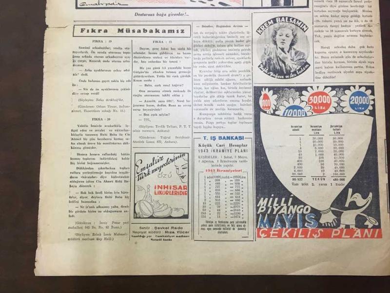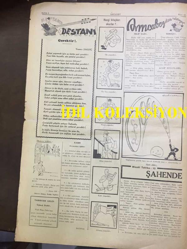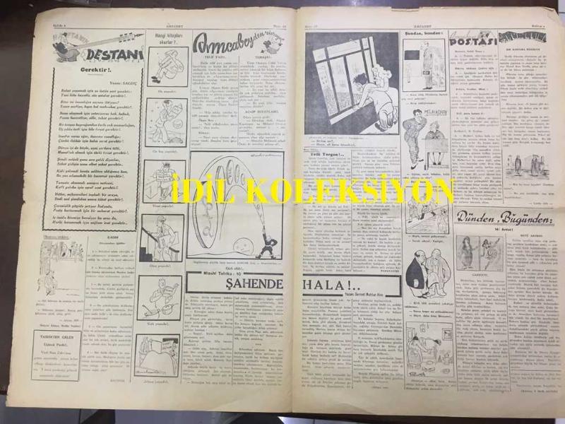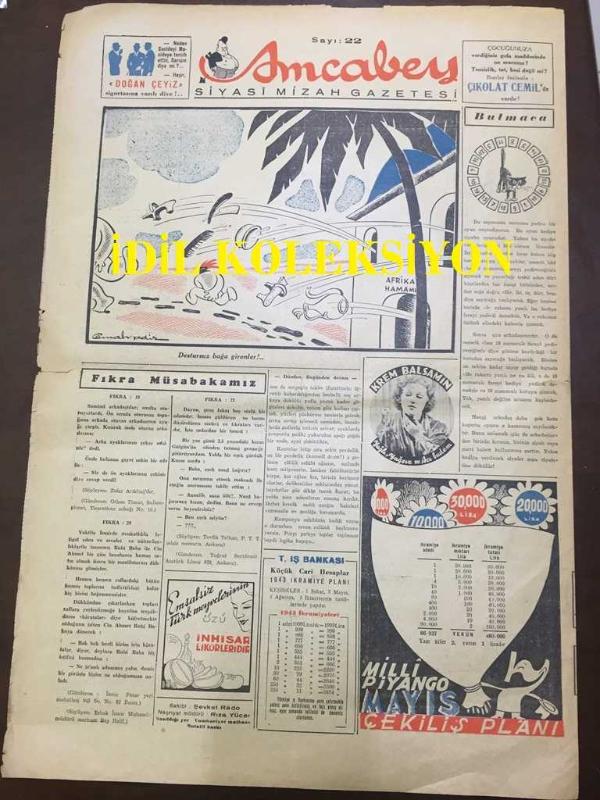 AMCABEY SİYASİ MİZAH GAZETESİ - 1 MAYIS 1943 - CİLT: 1 - SAYI: 22 - ZORLA GÜZELLİK OLUR MU? - AMCABEY OKULDA KARİKATÜR ÇİZİMİ - MİZAHI TEFRİKA 10, ŞAHENDE - TELLİ YORGAN - SERMET MUHTAR ALUS, HALA - DÜNDEN BUGÜNE 16 ARTİST - AMCABEY POSTASI - .2 DÜNYA SAVAŞI KARİKATÜR ÇİZİMİ - İNHİSAR LİKÖRLERİ - FIKRA MÜSABAKASI - MİLLİ PİYANGO 1943 ÇEKİLİŞİ, DOĞAN ÇEYİZ ve ÇİKOLAT CEMİL 1940'LAR REKLAMI - İŞ BANKASI KÜÇÜK CARİ HESAPLAR 1943 İKRAMİYE PLANI adlı eser, Kitap > Süreli Yayınlar > Gazeteler > Türkiye kategorisinde İkinci El olarak satıştadır.