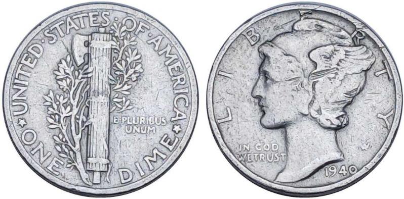 AMERİKA 1940 YILI 10 CENT (MERCURY DİME) GÜMÜŞ 2.4 Gr.