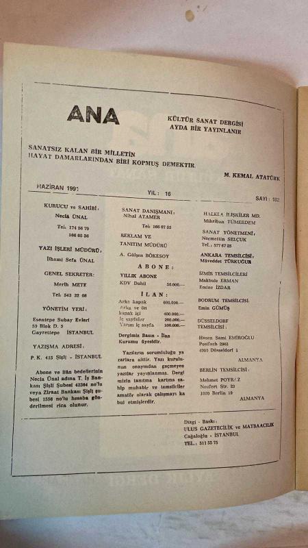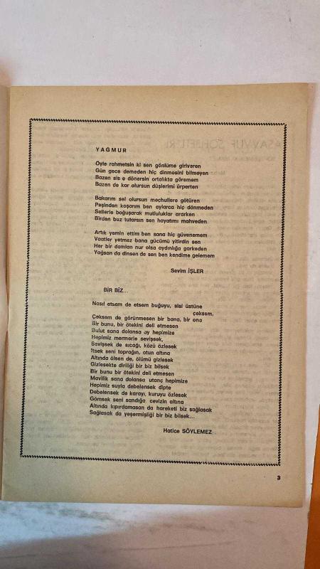 ANA KÜLTÜR SANAT, ŞİİR DERGİSİ - HAZİRAN 1991 SAYI: 182 SEVİM İŞLER – HATİCE SÖYLEMEZ – MEHMET RASİM MUTLU – FATMA KARAASLAN – FATMA ONUR – M. ASIM GÖRBİL – YILMAZ AYBAR – MELİH ÖZER – M. İHSAN BULUR – A. NECMETTİN ÇANGA – İSMAİL ÖZKAN – JALE UNAN – NIHAT ÖZYÜKSEL – TORNACI ÖMER DEVELİOĞLU – NECMETTİN SELÇUK – FAHİRE BELEN – YASER BEREKETOĞLU – VURAL ŞAHİN – MÜNİRE AKSARAY – AYTÜL DİNLER – ÜMİT MALKOÇ – TURAN İNAM – MİKAIL KILIÇ – ERCAN AKBAY – EROL GÜNGÖR – AYŞE MORGÜL – OKTAY ZERRİN – MEHMET BAYRAM – CAHİDE ULAŞ – ALTUĞ KURTKAN – TURABİ DOĞRİ – EFE URGUNLU – ÖMER ASLAN – MİNE ERBİL – EKREM ÇİÇEK – SEVİNÇ ERDAL – SEVİM IŞIK – SONGÜL ZAİM – HASAN SAMİ EMİROĞLU – MEHMET POYRAZ YAĞMUR – BİR BİZ… – USULCA GİTMİŞ – TEK BAŞINA BAĞIMSIZ ÖZGÜRLÜK’TEN GÖRÜNÜM – SESSİZ DÜNYA – YOKLUĞUN YAKTI BENİ – 1991 YILI ANA DERGİSİ GÜFTE YARIŞMASI DUYURUSU – LIONESS SANATÇILARI SERGİSİ – VAKIF HAFTASI ETKİNLİKLERİ – 8 MART DÜNYA KADINLAR GÜNÜ SERGİSİ – YUNUS EMRE SEVGİ GÜNÜ – YAŞARK - TAM TAKIM 36 SAYFA adlı eser, Kitap > Süreli Yayınlar > Dergiler > Magazin, Moda kategorisinde İkinci El olarak satıştadır.