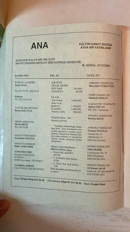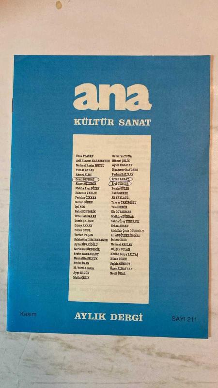 ANA KÜLTÜR SANAT, ŞİİR DERGİSİ - KASIM 1993 SAYI: 211 ÖZEN ATACAN – ARİF HİMMET KARAZEYBEK – MEHMET RASİM MUTLU – YILMAZ AYBAR – AHMET ALICI – CEMİL ÖZFIRAT – AHMET ÖZDEMİR – MELİHA AVNİ SÖZEN – BAHATTİN VARLIK – FERİDUN ÖZKAYA – MEDAR GÖREN – IŞIL KOÇ – BAHRİ SOHTORİK – İSMAİL ALİ SARAR – DAMLA ÇALIŞIR – GÜRAY AKKAN – FATMA ONUR – TURHAN TAŞAN – SELAHATTİN DEMİRKRANER – AYLIN SİPAHİOĞLU – NERİMAN GÖKDEMİR – SEVİM KARABULUT – NECMETTİN SELÇUK – EMİNE İNAN – M. YILMAZ ERDEM – AYŞE ERGÜN – MUTLU ÇELİK – KAMURAN TUNA – HİKMET ÇELİK – AYTEN ELBASAN – MUAMMER BAYDERE – FERHAN BALIRAK – ERCAN AKBAY – EROL GÜNGÖR – BERRİN GÜLER – HABİB GEREZ – ALİ YAYLAGÜL – TAYYAR TAHİROĞLU – TALAT DEMİR – ELA ODYAKMAZ – MEFKÜRE DÜNDAR – SALİHA ÜREŞ TERCANLI – ERHAN AKSAN – ABDULLAH ÇETİN OĞUZOĞLU – ALİ ABDÜLKERİMOĞLU – SULTAN ÖNER – MEHMET ARSLAN – MÜJGAN BULAN – NEZİHE DERYA BALTAŞ – NİHAN DİLEK – SEÇKİN GÜNDÜZ – ÖMER ALBAYRAK – NECLÂ ÜNAL MÜEBBETE RAZIYIM – EYLÜL – KAVGA GELDİ CİHA - TAM TAKIM 36 SAYFA adlı eser, Kitap > Süreli Yayınlar > Dergiler > Magazin, Moda kategorisinde İkinci El olarak satıştadır.