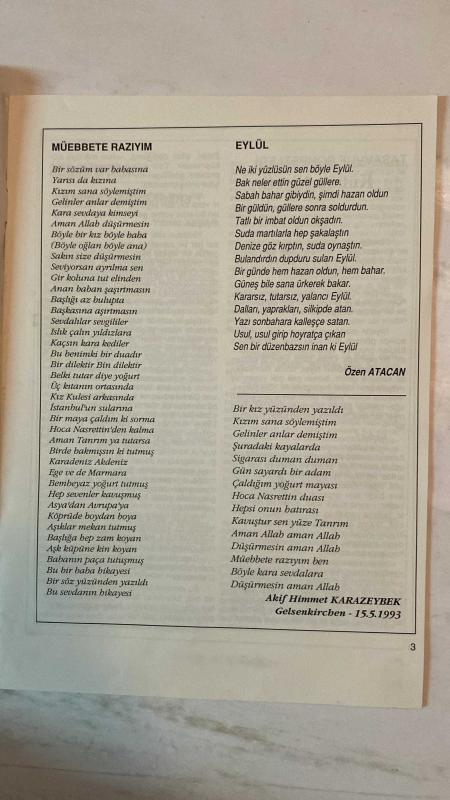 ANA KÜLTÜR SANAT, ŞİİR DERGİSİ - KASIM 1993 SAYI: 211 ÖZEN ATACAN – ARİF HİMMET KARAZEYBEK – MEHMET RASİM MUTLU – YILMAZ AYBAR – AHMET ALICI – CEMİL ÖZFIRAT – AHMET ÖZDEMİR – MELİHA AVNİ SÖZEN – BAHATTİN VARLIK – FERİDUN ÖZKAYA – MEDAR GÖREN – IŞIL KOÇ – BAHRİ SOHTORİK – İSMAİL ALİ SARAR – DAMLA ÇALIŞIR – GÜRAY AKKAN – FATMA ONUR – TURHAN TAŞAN – SELAHATTİN DEMİRKRANER – AYLIN SİPAHİOĞLU – NERİMAN GÖKDEMİR – SEVİM KARABULUT – NECMETTİN SELÇUK – EMİNE İNAN – M. YILMAZ ERDEM – AYŞE ERGÜN – MUTLU ÇELİK – KAMURAN TUNA – HİKMET ÇELİK – AYTEN ELBASAN – MUAMMER BAYDERE – FERHAN BALIRAK – ERCAN AKBAY – EROL GÜNGÖR – BERRİN GÜLER – HABİB GEREZ – ALİ YAYLAGÜL – TAYYAR TAHİROĞLU – TALAT DEMİR – ELA ODYAKMAZ – MEFKÜRE DÜNDAR – SALİHA ÜREŞ TERCANLI – ERHAN AKSAN – ABDULLAH ÇETİN OĞUZOĞLU – ALİ ABDÜLKERİMOĞLU – SULTAN ÖNER – MEHMET ARSLAN – MÜJGAN BULAN – NEZİHE DERYA BALTAŞ – NİHAN DİLEK – SEÇKİN GÜNDÜZ – ÖMER ALBAYRAK – NECLÂ ÜNAL MÜEBBETE RAZIYIM – EYLÜL – KAVGA GELDİ CİHA - TAM TAKIM 36 SAYFA, NECLA ÜNAL tarafından kaleme alınmıştır. Eser İLHAMİ SEFA ÜNAL editörlüğünde hazırlanmıştır. ANA KÜLTÜR SANAT, ŞİİR DERGİSİ - KASIM 1993 SAYI: 211 ÖZEN ATACAN – ARİF HİMMET KARAZEYBEK – MEHMET RASİM MUTLU – YILMAZ AYBAR – AHMET ALICI – CEMİL ÖZFIRAT – AHMET ÖZDEMİR – MELİHA AVNİ SÖZEN – BAHATTİN VARLIK – FERİDUN ÖZKAYA – MEDAR GÖREN – IŞIL KOÇ – BAHRİ SOHTORİK – İSMAİL ALİ SARAR – DAMLA ÇALIŞIR – GÜRAY AKKAN – FATMA ONUR – TURHAN TAŞAN – SELAHATTİN DEMİRKRANER – AYLIN SİPAHİOĞLU – NERİMAN GÖKDEMİR – SEVİM KARABULUT – NECMETTİN SELÇUK – EMİNE İNAN – M. YILMAZ ERDEM – AYŞE ERGÜN – MUTLU ÇELİK – KAMURAN TUNA – HİKMET ÇELİK – AYTEN ELBASAN – MUAMMER BAYDERE – FERHAN BALIRAK – ERCAN AKBAY – EROL GÜNGÖR – BERRİN GÜLER – HABİB GEREZ – ALİ YAYLAGÜL – TAYYAR TAHİROĞLU – TALAT DEMİR – ELA ODYAKMAZ – MEFKÜRE DÜNDAR – SALİHA ÜREŞ TERCANLI – ERHAN AKSAN – ABDULLAH ÇETİN OĞUZOĞLU – ALİ ABDÜLKERİMOĞLU – SULTAN ÖNER – MEHMET ARSLAN – MÜJGAN BULAN – NEZİHE DERYA BALTAŞ – NİHAN DİLEK – SEÇKİN GÜNDÜZ – ÖMER ALBAYRAK – NECLÂ ÜNAL MÜEBBETE RAZIYIM – EYLÜL – KAVGA GELDİ CİHA - TAM TAKIM 36 SAYFA adlı eser Türkçe dilindedir.