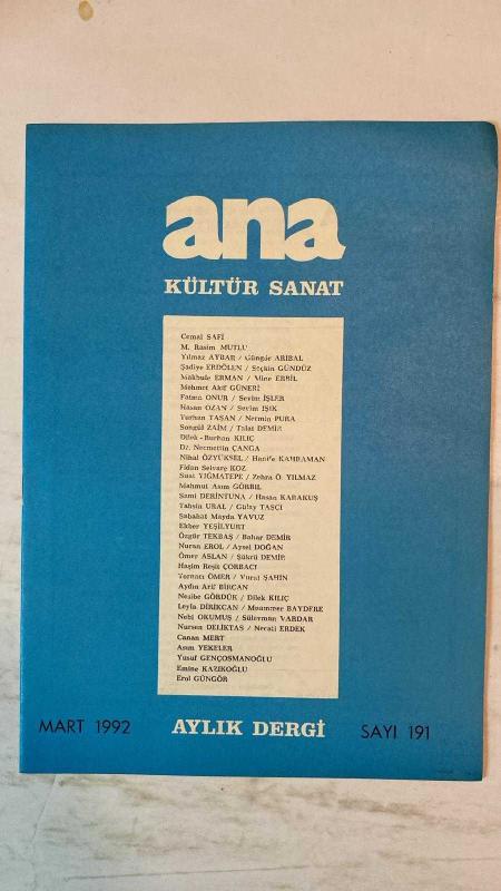 ANA KÜLTÜR SANAT, ŞİİR DERGİSİ - MART 1992 SAYI: 191 CEMAL SAFİ – M. RASİM MUTLU – YILMAZ AYBAR – GÜNGÖR ARIBAL – ŞADİYE ERDÖLEN – SEÇKİN GÜNDÜZ – MAKBULE ERMAN – MİNE ERBİL – MEHMET AKİF GÜNERİ – FATMA ONUR – SEVİM İŞLER – HASAN OZAN – SEVİM IŞIK – TURHAN TAŞAN – NERMİN PURA – SONGÜL ZAİM – TALAT DEMİR – DİLEK BURHAN KILIÇ – NECMETTİN ÇANGA – NIHAT ÖZYÜKSEL – HANİFE KAHRAMAN – FİDAN SELVARE KOZ – SUAT YIĞMATEPE – ZEHRA Ö. YILMAZ – MAHMUT ASIM GÖRBİL – SAMİ DERİNTUNA – HASAN KARAKUŞ – TAHSİN URAL – GÜLAY TAŞÇI – SABAHAT MAYDA YAVUZ – EKBER YEŞİLYURT – ÖZGÜR TEKBAŞ – BAHAR DEMİR – NURAN EROL – AYSEL DOĞAN – ÖMER ASLAN – ŞÜKRÜ DEMİR – HAŞİM REŞİT ÇORBACI – TORNACI ÖMER – VURAL ŞAHİN – AYDIN ARİF BİRCAN – NESİBE GÖRDÜK – DİLEK KILIÇ – LEYLA DİRİKCAN – MUAMMER BAYDERE – NEBİ OKUMUŞ – SÜLEYMAN VARDAR – NURSEN DELİKTAŞ – CANAN MERT – ASIM YEKELER – NECATİ ERDEK – YUSUF GENÇOSMANOĞLU – EMİNE KAZIKOĞLU – EROL GÜNGÖR KIŞ GELMEZ OLDU – SİL BAŞTAN – SÖYLENCE – ŞÜKRİYE IŞI. - TAM TAKIM 36 SAYFA adlı eser, Kitap > Süreli Yayınlar > Dergiler > Magazin, Moda kategorisinde İkinci El olarak satıştadır.