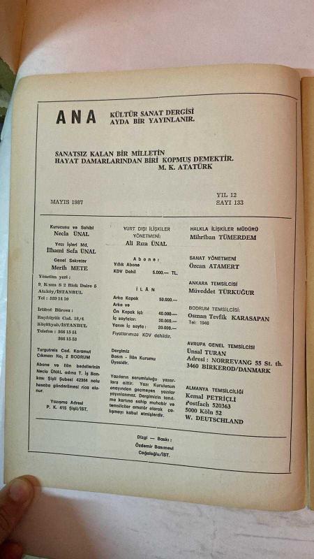 ANA KÜLTÜR SANAT, ŞİİR DERGİSİ - MAYIS 1987 SAYI: 133 NECLA ÜNAL - ALİ NARÇIN - ÖZCAN ATAMERT - MELİH ÖZER - KEMAL BAYRAM - HACER YETER - SEVGİ BALIN - VİLDAN ÇOLAK - SEFA ÜNAL - MÜVEDDET TÜRKUĞUR - EMİNE ERTEM - ASUMAN ŞAPAĞASIOĞLU - MUHİDDİN N. GÜVEN - ENVER YORULMAZ - AHMET AYDIN - BÜLENT ATAKUL - AYSEN ÖZGÖR - MEHMET CEM YIĞIT - MAKBULE AĞCA - YILDIRIM DOĞAN ERGENELİ - NUSRET HIZIR - ABDURRAHMAN KAYMAK - ADEM GÜNEY - DURSUN FİKRİ GENÇ - VEDAT GÜLER - SAİT FAİK ABASIYANIK - NAZIM SÖKMEN - ATTİLA ÜNAL - BEKİR SITKI TUNCER - GÜNGÖR ARİBAL - SEMİH METE - ZEKİ MÜREN - LERZAN ÖKE - ORHAN TAŞAN - MÜVEDDET GÜNBAY - NURTEN KOLÇAK TEZMEN - SELAHATTİN EVCİL - CENAN AKIN - SEVAL IRMAK - GÖNÜL OYMAN - EKREM ZEKİ ÜN - MUAMMER SUN - SABAHATTİN KALENDER - YAR DEYİNCE ANA DİYAR DEYİNCE BODRUM - GÜN İÇİNDE KİLİTLENMİŞ GÜNLÜKLER - ANNE SEVGİSİ - ANAM - DERGİMİZİN YILLIK YEMEĞİ - ŞİİR YARIŞMASI ÖDÜLLERİ - RESİM MÜZİK SEMİNERİ - RESSAMLAR DERNEĞİ - BEKİR SITKI TUNCER SERGİSİ - AKA - TAM TAKIM 36 SAYFA adlı eser, Kitap > Süreli Yayınlar > Dergiler > Magazin, Moda kategorisinde İkinci El olarak satıştadır.