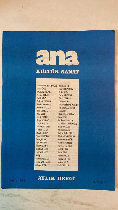 ANA KÜLTÜR SANAT, ŞİİR DERGİSİ - MAYIS 1998 — SAYI: 242 MÜVEDDET T. YAYIKOĞLU - FATMA ONUR - NECLÂ ÜNAL - GALİP UZUNCA - YILMAZ AYBARTH - SADIK ATAY - NEJAT GÜLÜMSER - SAMİYE ATAERGIN - MEHMET AHI AKIN - SİBEL DEMİRİZ - AYLA AYDIN - NECATİ ERDEK - BELGİN ALAGÖZ - SAMİ DERİNTUNA - METİN KOCA - ÖZCAN ATAMERT - GÜNER CEYLAN - CELİLE ÇELİKEL - DAVUT İBRAHİMOĞLU - NURDANE UZUN TEMUR - ENGİN ÇIR - HAŞİM REŞİT ÇORBACI - DÖNE KÖSE - İSMAİL HAKKI SIR - CENGİZ YAKUT - ALİ ABDÜLKERİMOĞLU - BAHRİ SOHTORİK - TURHAN TAŞAN - HÜSEYİN GÜLER - MEHMET ENGİN - MUALLA ORHON - BEDRİYE ERDAĞ GÜREL - VEDAT FİDANBOY - MUSTAFA KARAMELEK - SEVİNÇ ERDAL - MEHMET CEM YİĞİT - AYLA ATAMAN - ÜMİT MALKOÇ - MEHLIKA BAŞER - LATİF KARAGÖZ - MAHMUT BOZTEPE - NEVİN ATEŞOĞLU - İNCİ KOLBAY - HASAN OZAN - MUSTAFA ACAR - MEHMET GÜVEN - ALİ IŞIK - MEHMET ARSLAN - CEMAL KARAAĞAÇ - SÜHEYLA KUTBAY - İSMİHAN ŞİRİN - LÜTFÜ GÜLŞEN - TURGUT YARKENT - MÜNEVVER SÖNMEZ - VEYSEL UYANIK KÜLTÜR SANAT - ANNE - ANAM - A - TAM TAKIM 36 SAYFA, NECLA ÜNAL tarafından kaleme alınmıştır. Eser İLHAMİ SEFA ÜNAL editörlüğünde hazırlanmıştır. ANA KÜLTÜR SANAT, ŞİİR DERGİSİ - MAYIS 1998 — SAYI: 242 MÜVEDDET T. YAYIKOĞLU - FATMA ONUR - NECLÂ ÜNAL - GALİP UZUNCA - YILMAZ AYBARTH - SADIK ATAY - NEJAT GÜLÜMSER - SAMİYE ATAERGIN - MEHMET AHI AKIN - SİBEL DEMİRİZ - AYLA AYDIN - NECATİ ERDEK - BELGİN ALAGÖZ - SAMİ DERİNTUNA - METİN KOCA - ÖZCAN ATAMERT - GÜNER CEYLAN - CELİLE ÇELİKEL - DAVUT İBRAHİMOĞLU - NURDANE UZUN TEMUR - ENGİN ÇIR - HAŞİM REŞİT ÇORBACI - DÖNE KÖSE - İSMAİL HAKKI SIR - CENGİZ YAKUT - ALİ ABDÜLKERİMOĞLU - BAHRİ SOHTORİK - TURHAN TAŞAN - HÜSEYİN GÜLER - MEHMET ENGİN - MUALLA ORHON - BEDRİYE ERDAĞ GÜREL - VEDAT FİDANBOY - MUSTAFA KARAMELEK - SEVİNÇ ERDAL - MEHMET CEM YİĞİT - AYLA ATAMAN - ÜMİT MALKOÇ - MEHLIKA BAŞER - LATİF KARAGÖZ - MAHMUT BOZTEPE - NEVİN ATEŞOĞLU - İNCİ KOLBAY - HASAN OZAN - MUSTAFA ACAR - MEHMET GÜVEN - ALİ IŞIK - MEHMET ARSLAN - CEMAL KARAAĞAÇ - SÜHEYLA KUTBAY - İSMİHAN ŞİRİN - LÜTFÜ GÜLŞEN - TURGUT YARKENT - MÜNEVVER SÖNMEZ - VEYSEL UYANIK KÜLTÜR SANAT - ANNE - ANAM - A - TAM TAKIM 36 SAYFA adlı eser Türkçe dilindedir.