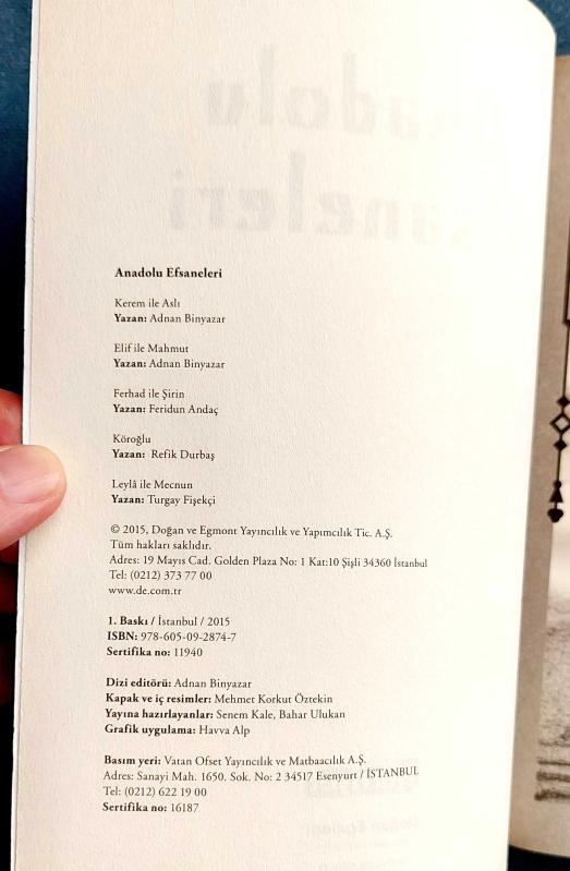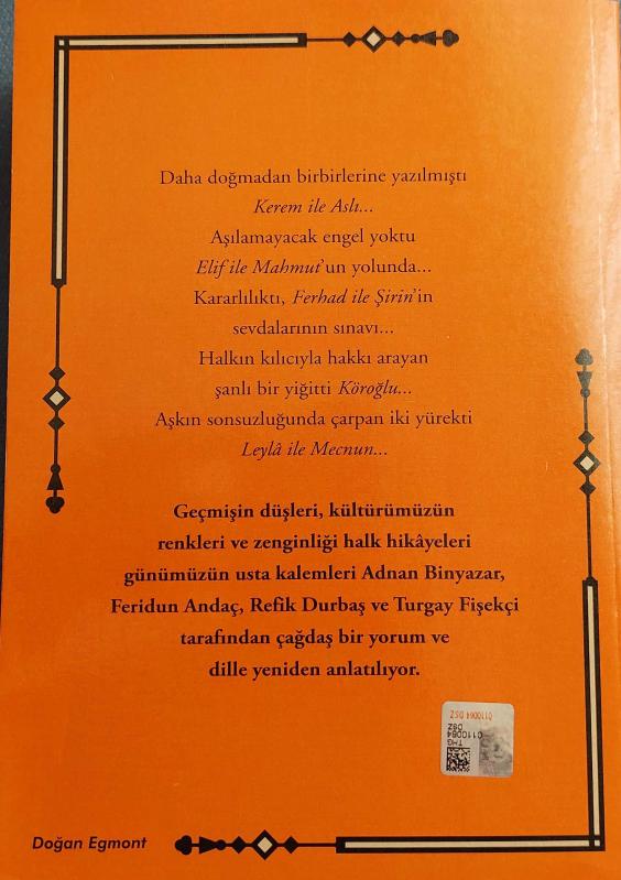 ANADOLU EFSANELERİ Kerem ile Aslı : ADNAN BİNYAZAR Elif ile Mahmut : ADNAN BİNYAZAR Ferhat ile Şirin : FERİDUN ANDAÇ Köroğlu : REFİK DURBAŞ Leyla ile Mecnun : TURGAY FİŞEKÇİ DOĞAN ve EGMONT YAYINCILIK 1. BASKI / 2015 602 SAYFA SIFIR KİTAP