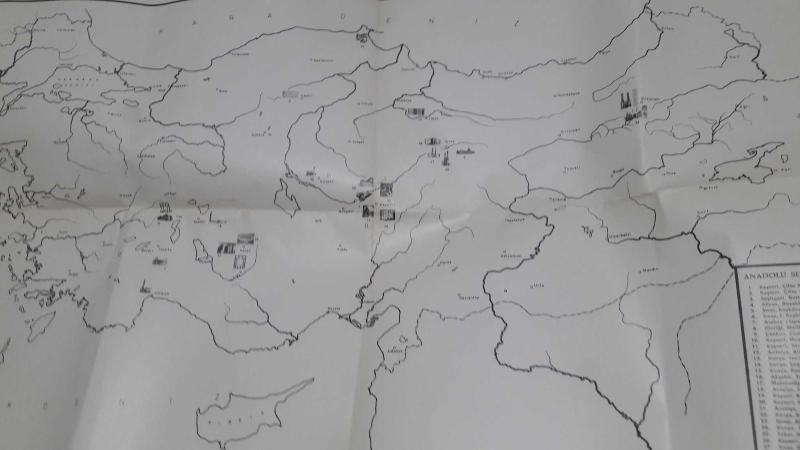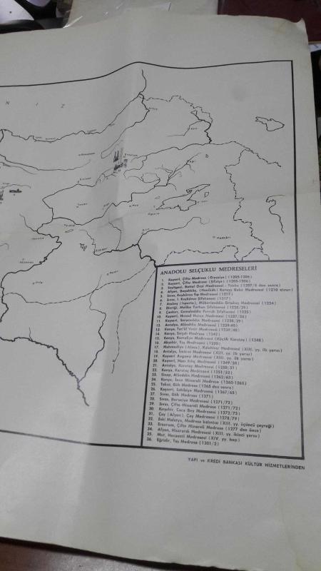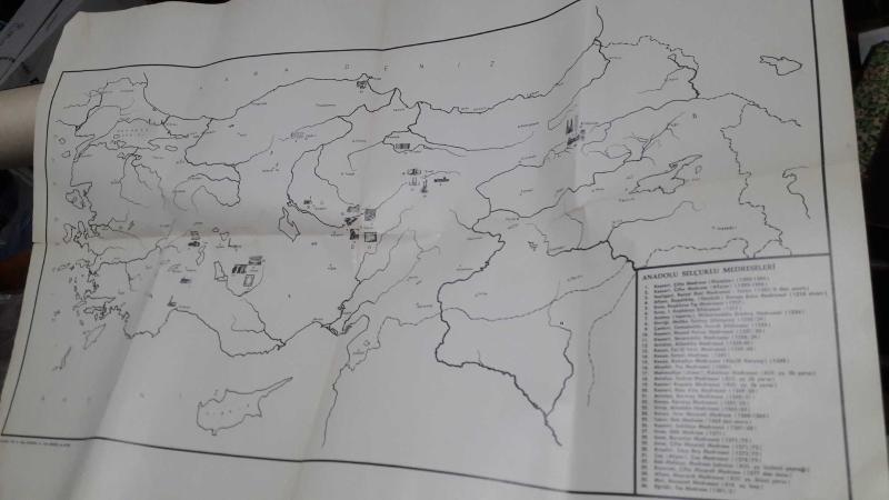 ANADOLU SELÇUKLU MEDRESELERİ HARİTASI OKTAY ASLANAPA , Yıldız Demiriz , Ara Altun başlıklı antika/koleksiyon objesi Türkiye menşe’lidir. 1960-1979 arası dönemine aittir.