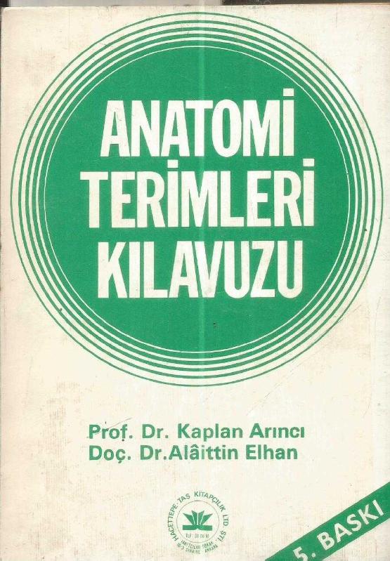 ANATOMİ TERİMLERİ KILAVUZU (5. BASKI), KAPLAN ARINCI - ALAİTTİN ELHAN tarafından kaleme alınmıştır. Kitap 1983 yılında HACETTEPE TAŞ KİTAPÇILIK tarafından [ANKARA] yayınlanmıştır. 148 sayfadır. ANATOMİ TERİMLERİ KILAVUZU (5. BASKI) adlı eser Türkçe dilindedir.