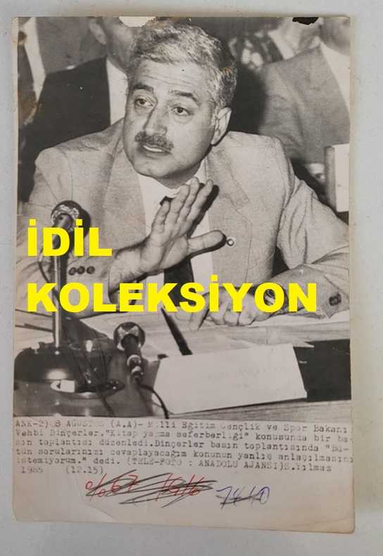 ANAVATAN PARTİSİ'NİN (ANAP) KURUCULARINDAN, ESKİ MİLLİ EĞİTİM GENÇLİK ve SPOR BAKANI VEHBİ DİNÇERLER'İN ORİJİNAL AJANS-BASIN FOTOĞRAFI - 18 x 12 cm EBADINDA - VEHBİ DİNÇERLER, ''KİTAP YAZMA SEFERBERLİĞİ'' KONUSUNDA DÜZENLEDİĞİ BASIN TOPLANTISINDA KONUŞMA YAPARKEN. 1985, bir saat önce satışa sunulmuştur.