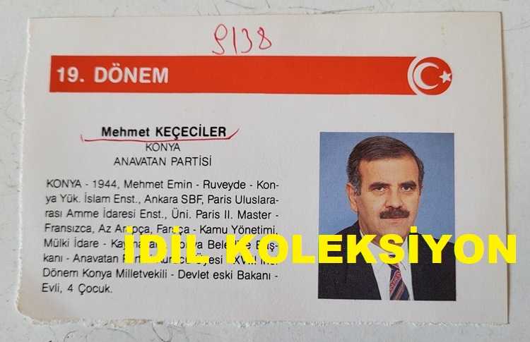 ANAVATAN PARTİSİ'NİN (ANAP) KURUCULARINDAN, GÜMRÜKTEN SORUMLU ESKİ DEVLET BAKANI MEHMET KEÇECİLER'İN SEÇİM DÖNEMİNDEN DERGİDEN KESİLME FOTOĞRAFLI KÜÇÜK TANITIM KÜPÜRÜ - 12 x 8 cm EBADINDA - ARKA SAYFA, ÖMER ŞEKER, KONYA, DYP, DOĞRU YOL PARTİSİ, en son 4 ay önce güncellenmiştir.