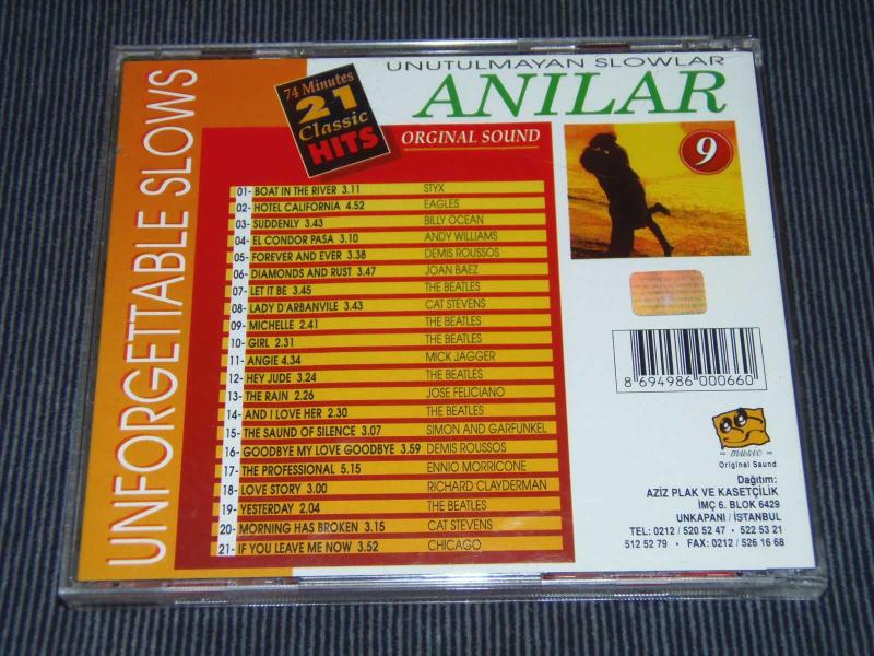 ANILAR 9 UNUTULMAYAN SLOWLAR 21 SÜPER HİT SLOW PARÇA ÇOK TEMİZ MÜZİK CD SİDİR. SIFIR AYARINDA TEMİZ ORJİNAL CDLER ÇOK UCUZA (C07)