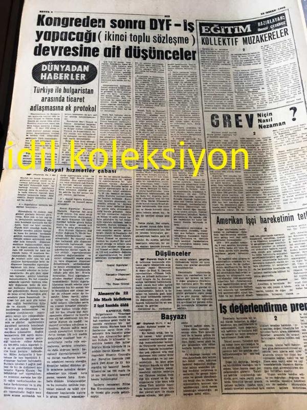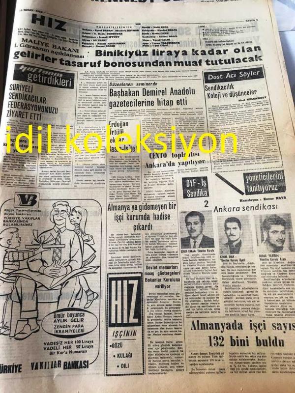 ANKARA HIZ GAZETESİ YEREL TAŞRA BASINI--- 15 Nisan 1966-DYP -İş Yöneticileri Çalışma Programını Tespit Edecek --Demokratik Sendikacılık :Ahmet Çatalçinler --Çalışma Bakanı Almanya 'ya Gidiyor --Grevler ve kaybolan iş gücü --Kemal Köprülü DYF -İş Hukuk ve Araştırma Müdürü --Başbakan Demirel Anadolu Gazetecilerine Hitap Etti --Sendikacılık Koleji ve Düşünceler :Naci Gelendost -- Yıpranma, sararmalar, kupon kesiği ve yırtılmalar zamana bağlı olarak görülebilir.
