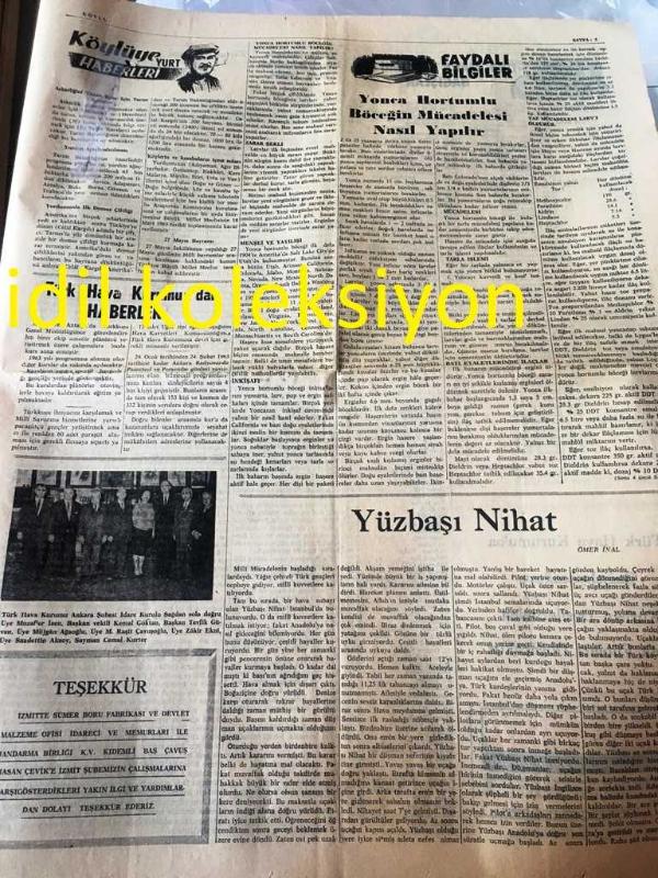 ANKARA KÖYLÜ GAZETESİ YEREL TAŞRA BASINI ---Mayıs 1963 Sayı :200--Türk Kuşu 'nda Atatürk Büstü --Kırık Kanat :Aytuğ Gül --NATO Ondört Yaşında --Adana da Açılan Planör Kursu İlgi ile Karşılandı --Zeytin :Abdullah Cizre --Yonca Hortumlu Böceğin Mücadelesi Nasıl Yapılır --Yüz başı Nihat --:Ömer İNAL -- Yıpranma, sararmalar, kupon kesiği ve yırtılmalar zamana bağlı olarak görülebilir.