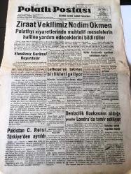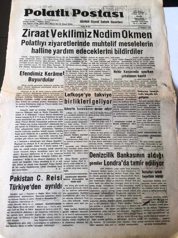 ANKARA POLATLI POSTASI GAZETESİ YEREL TAŞRA BASINI YEREL TAŞRA BASINI ---18 Temmuz 1958 Yıl :2 Sayı :496- Ziraat Vekilimiz Nedim Okmen Polatlı'yı Ziyaretinde Muhtelif Meselelerin Halline Yardım Edeceklerini Bildirdiler -- Efendimiz Keramet Buyurdular - Lefkoşe 'ye takviye birlikleri geliyor - -Pakistan Cumhur Reisi Türkiye den Ayrıldı - Nehir Kenarında Uyurken Yakalanan Katil -- Denizcilik Bankasının Aldığı Gemiler Londra da Tamir ediliyor --İngiltere 'nin Arap Siyaseti ve Ürdün - Güreşçilerimiz Dün Peşteye Gittiler - Necdet Çobanlı Fahri Somer 'e Cevabı - Yıpranma, sararmalar, kupon kesiği ve yırtılmalar zamana bağlı olarak görülebilir.