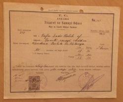 24x19.5cm ANKARA SANAYİ ve TİCARET ODASI KAYT ve TESCİL VARAKASI 1931 yılı, Caferzade Salih Efendi