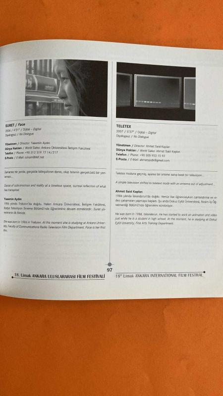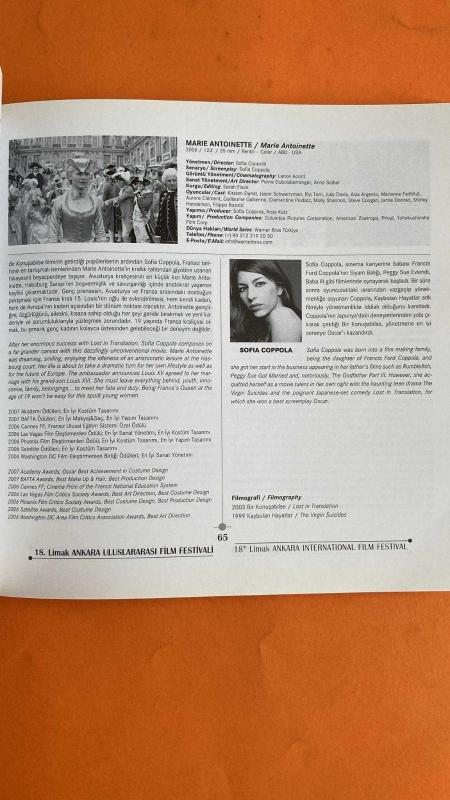 ANKARA ULUSLARARASI FİLM FESTİVALİ DERGİSİ - NİSAN 2007 - LİMAK ANKARA ULUSLARARASI FİLM FESTİVALİ - M. İNCİ DEMİRKOL - AYSAN SÜMERCAN - FÜSUN OKUTAN - İBRAHİM DEMİREL - MUSA AYDOĞAN - ZEYNEP ÜNAL ESENLİ - EDA DURUKAN - ABİDİN ŞAHİN - KERİM KÜÇÜKATİK - EBRU ÖZDEMİR - PROF. DR. H. OĞUZ ONARAN - AHMET GÜRATA - ANDREAS TRESKE - CAN ÖZGÜN - ERSAN OCAK - MEHMET AÇIKTAN - NEJDET KARA - NEJAT ULUSAY - ÖZGÜR KALIN - THOMAS BALKENHOL - SOFIA COPPOLA - KIRSTEN DUNST - JASON SCHWARTZMAN - RIP TORN - JUDY DAVIS - ASIA ARGENTO - MARIANNE FAITHFULL - BENOIT JACQUOT - ISILD LE BESCO - OUASSINI EMBAREK - NICOLAS DUVAUCHELLE - ONUR ÖNER - BÜNYAMİN BAYANSAL - MARIE ANTOINETTE - À TOUT DE SUITE - DÖNGÜ - THE WORLD - EN İYİ KOSTÜM TASARIMI - EN İYİ SANAT YÖNETİMİ - CANNES FF - GIJON FF - AKADEMİ ÖDÜLLERİ - BAFTA ÖDÜLLERİ - SATELLITE ÖDÜLLERİ - WASHINGTON DC ELEŞTİRMENLERİ - FRANSIZ YENİ DALGASI - BANKA SOYGUNU - KİŞİSEL ÖZGÜRLÜK ARAYIŞI - VİCIOUS CIRCLE - FESTİVAL YÖNETİMİ - FESTİVAL KOORDİNA - 238 SAYFA adlı eser Türkçe dilindedir.