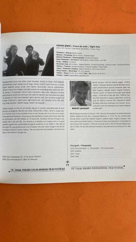 ANKARA ULUSLARARASI FİLM FESTİVALİ DERGİSİ - NİSAN 2007 - LİMAK ANKARA ULUSLARARASI FİLM FESTİVALİ - M. İNCİ DEMİRKOL - AYSAN SÜMERCAN - FÜSUN OKUTAN - İBRAHİM DEMİREL - MUSA AYDOĞAN - ZEYNEP ÜNAL ESENLİ - EDA DURUKAN - ABİDİN ŞAHİN - KERİM KÜÇÜKATİK - EBRU ÖZDEMİR - PROF. DR. H. OĞUZ ONARAN - AHMET GÜRATA - ANDREAS TRESKE - CAN ÖZGÜN - ERSAN OCAK - MEHMET AÇIKTAN - NEJDET KARA - NEJAT ULUSAY - ÖZGÜR KALIN - THOMAS BALKENHOL - SOFIA COPPOLA - KIRSTEN DUNST - JASON SCHWARTZMAN - RIP TORN - JUDY DAVIS - ASIA ARGENTO - MARIANNE FAITHFULL - BENOIT JACQUOT - ISILD LE BESCO - OUASSINI EMBAREK - NICOLAS DUVAUCHELLE - ONUR ÖNER - BÜNYAMİN BAYANSAL - MARIE ANTOINETTE - À TOUT DE SUITE - DÖNGÜ - THE WORLD - EN İYİ KOSTÜM TASARIMI - EN İYİ SANAT YÖNETİMİ - CANNES FF - GIJON FF - AKADEMİ ÖDÜLLERİ - BAFTA ÖDÜLLERİ - SATELLITE ÖDÜLLERİ - WASHINGTON DC ELEŞTİRMENLERİ - FRANSIZ YENİ DALGASI - BANKA SOYGUNU - KİŞİSEL ÖZGÜRLÜK ARAYIŞI - VİCIOUS CIRCLE - FESTİVAL YÖNETİMİ - FESTİVAL KOORDİNA - 238 SAYFA adlı eser, Kitap > Süreli Yayınlar > Dergiler > Sanat > Sinema, Radyo, TV kategorisinde İkinci El olarak satıştadır.