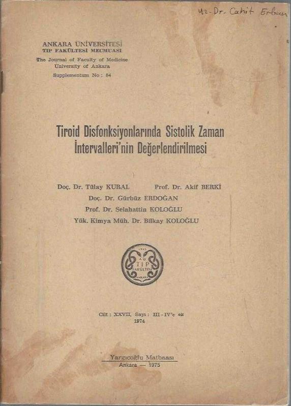 ANKARA ÜNİVERSİTESİ TIP FAKÜLTESİ MECMUASI - TROID DİSFONKSİYONLARINDA SİSTOLİK ZAMAN İNTERVALLERİ'NİN DEĞERLENDİRİLMESİ - CİLT:XXVII SAYI:III-IV 1974, KOMİSYON tarafından kaleme alınmıştır. Kitap 1975 yılında YARGIÇOĞLU MATBAASI tarafından [ANKARA] yayınlanmıştır. 31 sayfadır. ANKARA ÜNİVERSİTESİ TIP FAKÜLTESİ MECMUASI - TROID DİSFONKSİYONLARINDA SİSTOLİK ZAMAN İNTERVALLERİ'NİN DEĞERLENDİRİLMESİ - CİLT:XXVII SAYI:III-IV 1974 adlı eser Türkçe dilindedir.