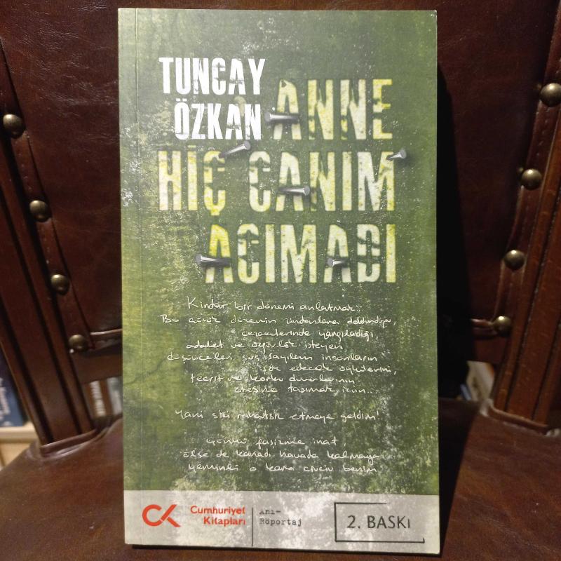 ANNE HİÇ CANIM ACIMADI, TUNCAY ÖZKAN tarafından kaleme alınmıştır. Kitap 2012 yılında CUMHURİYET KİTAPLARI tarafından yayınlanmıştır. 225 sayfadır. Sayfa bilgisi 225 olarak belirtilmiştir. ANNE HİÇ CANIM ACIMADI adlı eser Türkçe dilindedir.