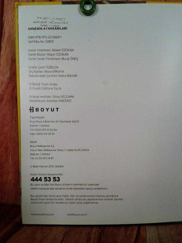 **ANNEMİN AYAKKABILARI. NADİR KIYMETLİ BİR KİTAP.**, Silvia Vecchini tarafından kaleme alınmıştır. Kitap 2013 yılında BOYUT YAYIN tarafından [iSTANBUL] 9789752306691 ISBN kodu ile yayınlanmıştır. Satışta olan kitap, yayınevinin 3. baskısıdır. Bu baskının çevirisi Kübra Bahar tarafından yapılmıştır. 31 sayfadır. **ANNEMİN AYAKKABILARI. NADİR KIYMETLİ BİR KİTAP.** adlı eser Türkçe dilindedir.