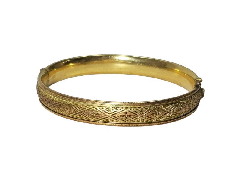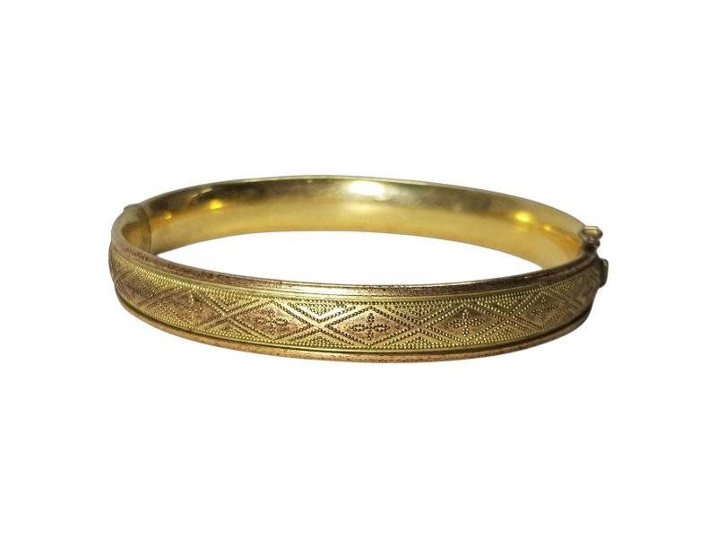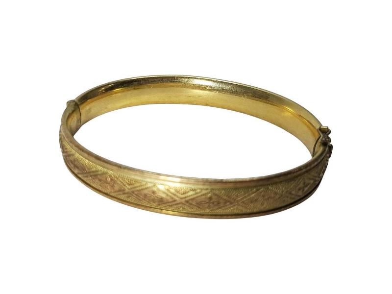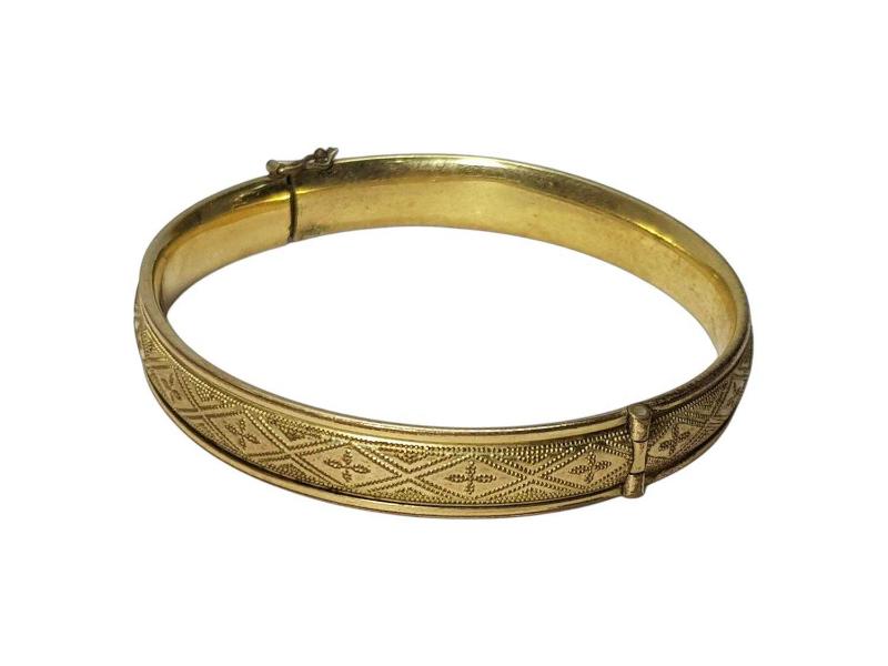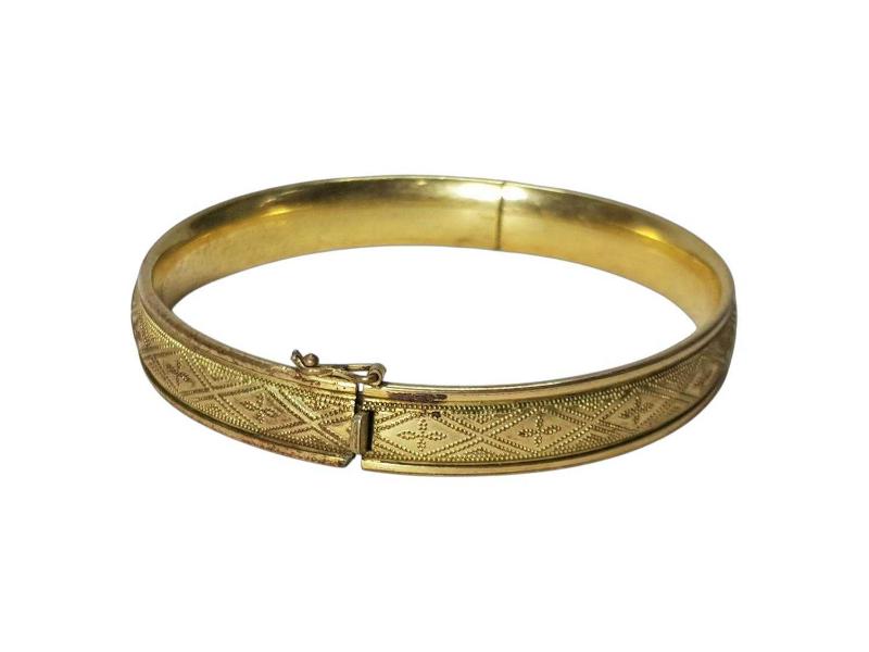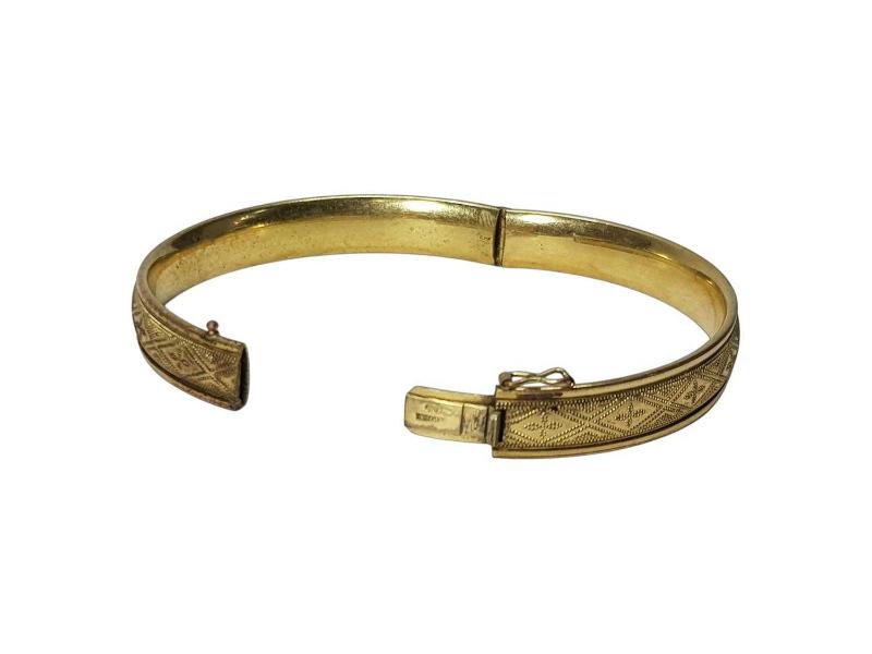1930-1940'LARDAN ALMAN YAPIMI ÜZERİ HAÇ DESENLİ ALTIN KAPLAMA BİLEZİK. ÇAP: 6,5 CM
