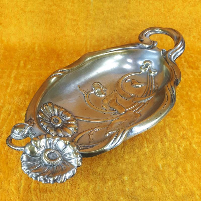 ANTİKA ART NOUVEAU TARZDA KABARTMA ÇİÇEKLER GÖRSELLİ PİRİNÇ ÜZERİNE GÜMÜŞ KAPLAMA ÇİFT KULPLU TEPSİ, en son 4 ay önce güncellenmiştir.