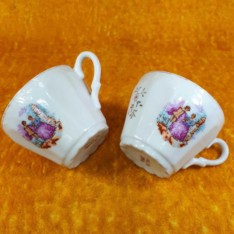 ANTİKA BİR ÇİFT MADE IN JAPAN FRAGONARD RESİMLİ PORSELEN FİNCAN , TABAKLARI YOK başlıklı antika/koleksiyon objesi Uzak Doğu menşe’lidir. 1940-1959 arası dönemine aittir.