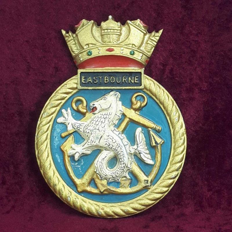 ANTİKA BİRLEŞİK KRALLIK KRALİYET DONANMASI HMS EASTBOURNE FIRKATEYNİ EL BOYAMA ALİMÜNYUM METAL GEMİ ARMASI, en son 3 gün önce güncellenmiştir.