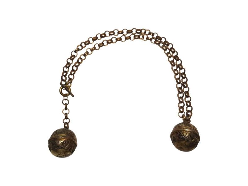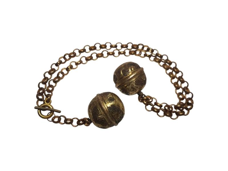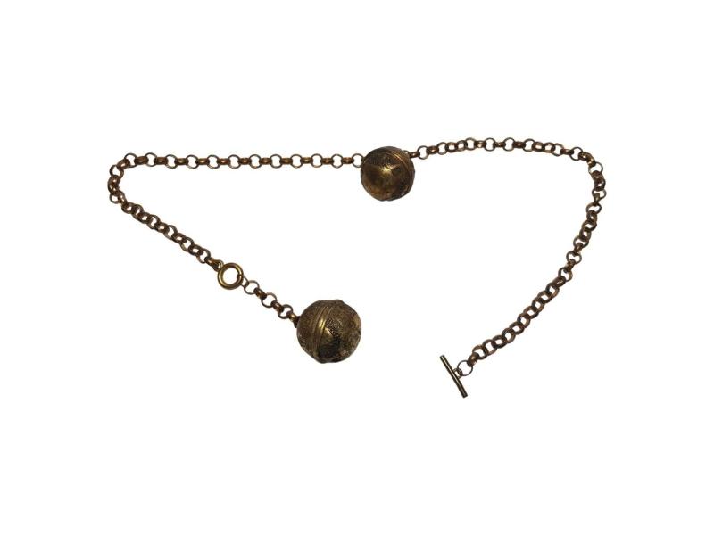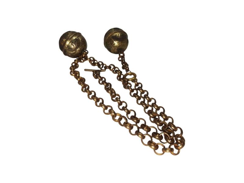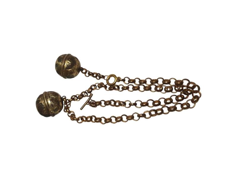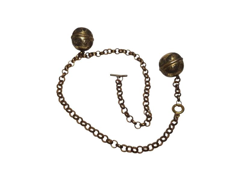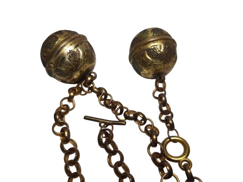 FARKLI FORMDA ANTİKA ALTIN KAPLAMA CEP SAATİ KÖSTEĞİ. UZUNLUK: 57 CM