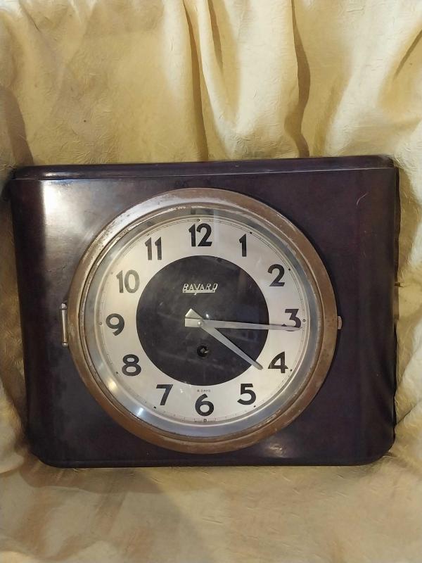ANTİKA DUVAR SAATİ, BAYARD MARKA 1935 - 1940 FRANSA ÜRETİMİ KURMALI, BAKALİT KASA 8 GÜNLÜK DUVAR SAATİ, Sorunsuz Çalışmaktadır, makinesi mükemmel orijinâl üründür..