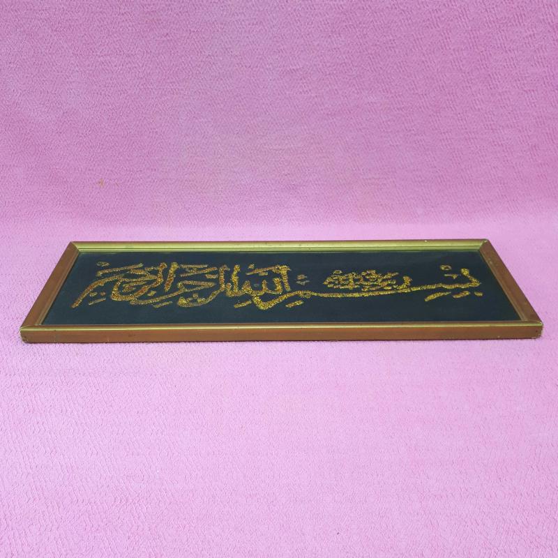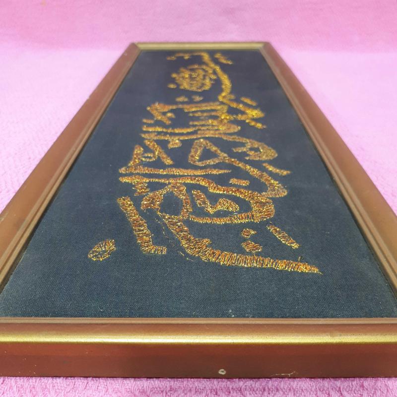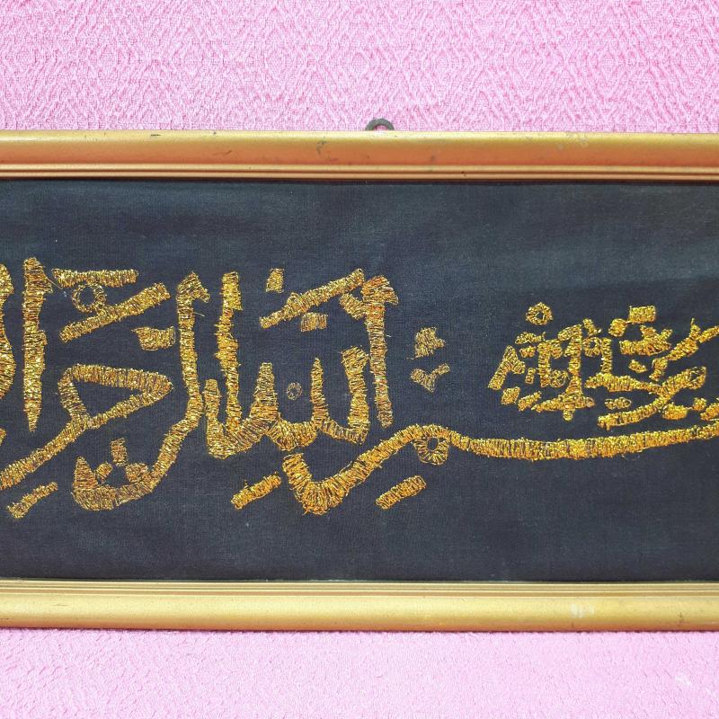 ANTİKA EL İŞİ BEZ ÜZERİNE ALTIN YALDIZ TEL KIRMA BESMELE-İ ŞERİF ORJİNAL ÇERÇEVESİNDE HAT LEVHA başlıklı antika/koleksiyon objesi Türkiye menşe’lidir. 1940-1959 arası dönemine aittir.