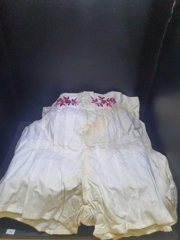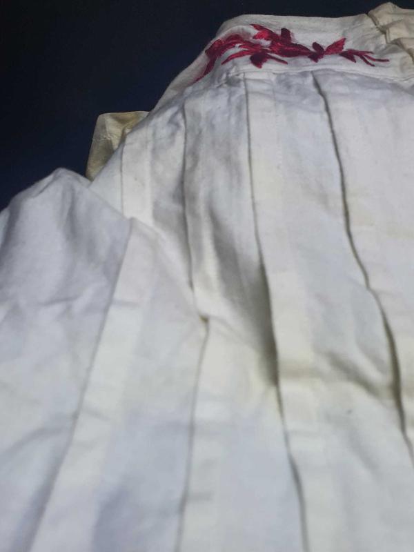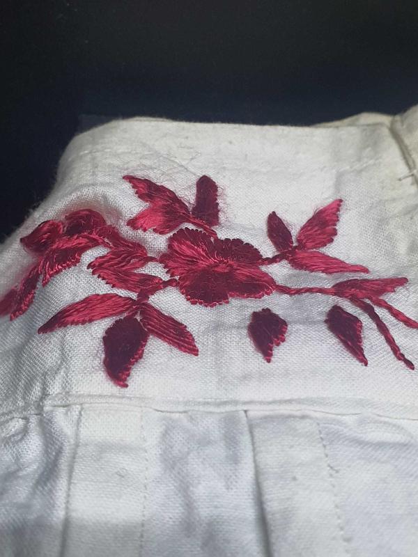 Geç Osmanlı dönemi pamuk pazen kumaş pileli işçilikli bel kemer kısmı çift taraflı ipek iplik el nakışı ANTİKA KOLLEKSİYONLUK temiz sandık lekeli
