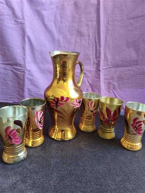 ANTİKA GELİN ŞERBET TAKIMI- SÜRAHİ 25 CM. -12 CM. BARDAK. CAM- EL BOYAMA, 12 gün önce kitantik’te satışa sunulmuştur.