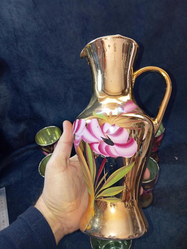 ANTİKA GELİN ŞERBET TAKIMI- SÜRAHİ VE 5 BARDAK. CAM- EL BOYAMA, bir ay önce kitantik’te satışa sunulmuştur.